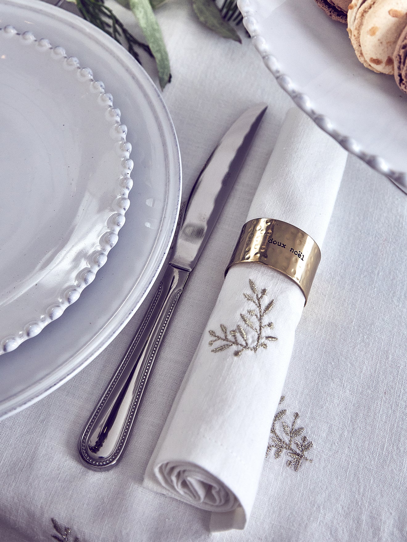 Serviette de table brodée en coton tramé aspect lin par lot de 4