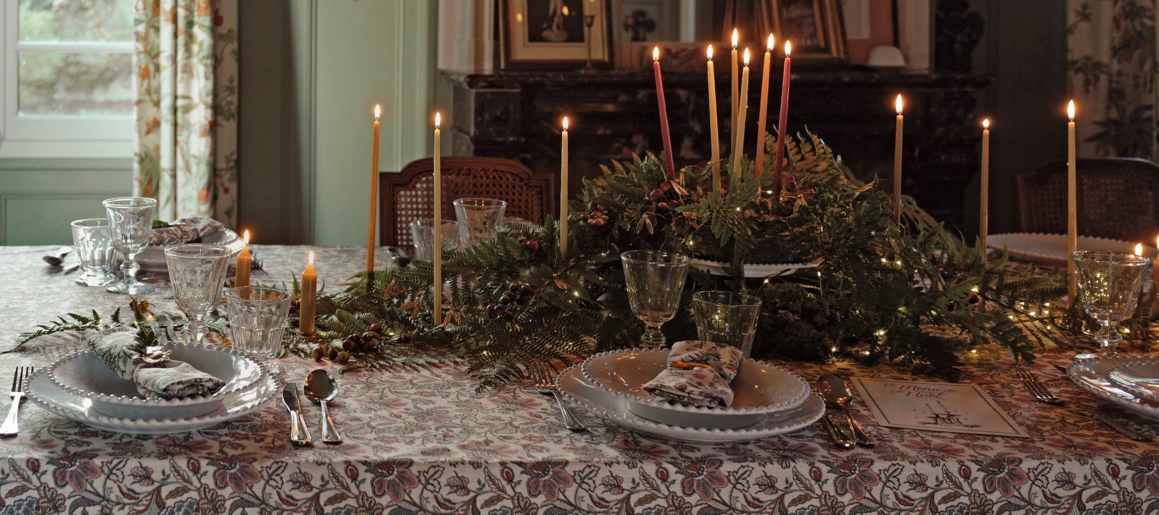 Nappe en coton tramé aspect lin - Collection Noël