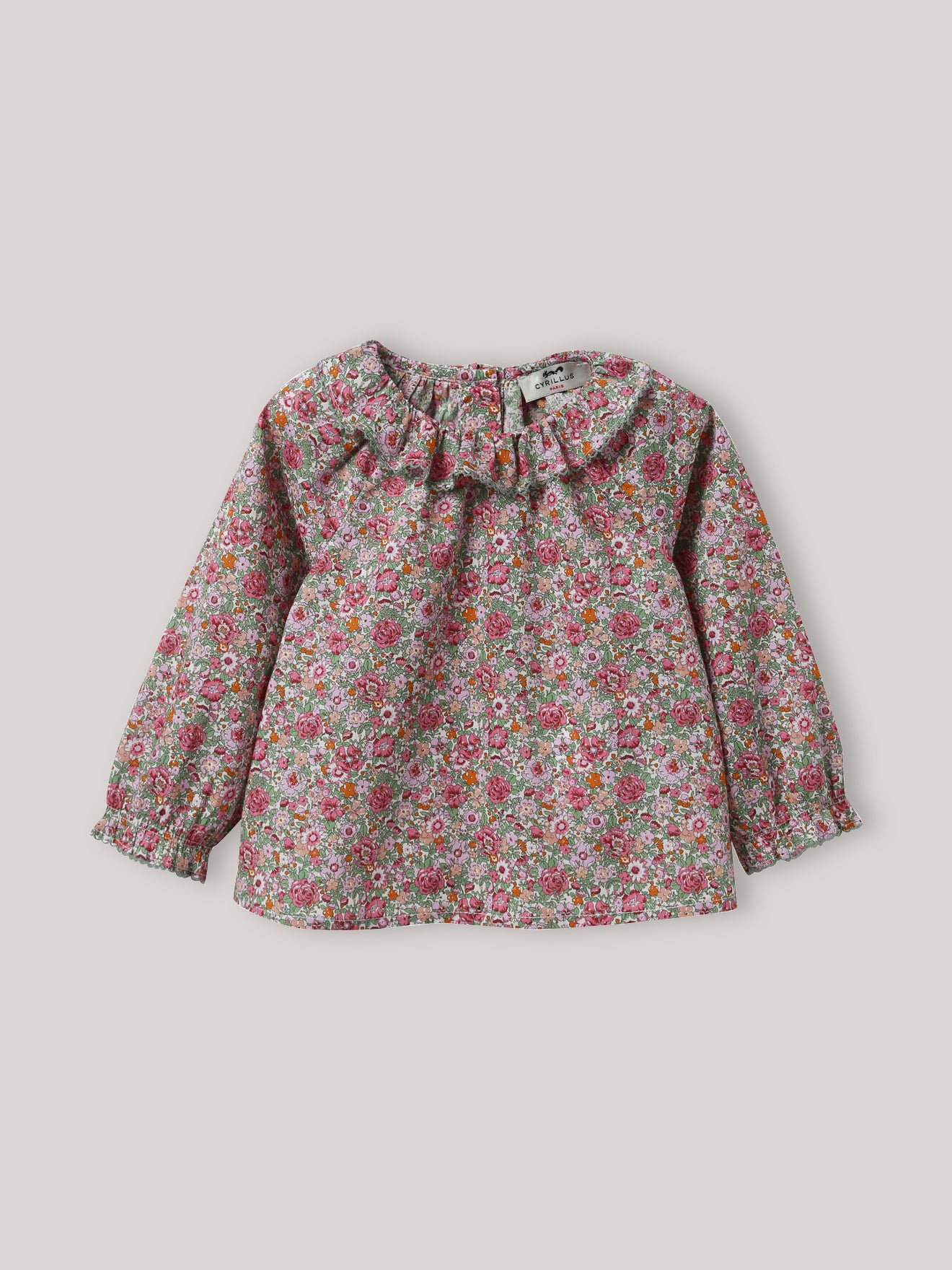 Baby's organic cotton T-shirt, collar made with Liberty fabric