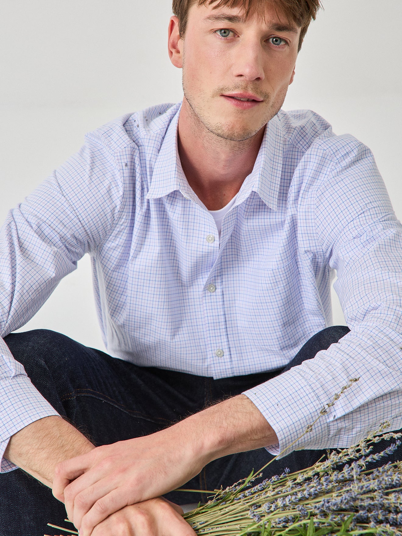 Men's tattersall check shirt with contemporary fit