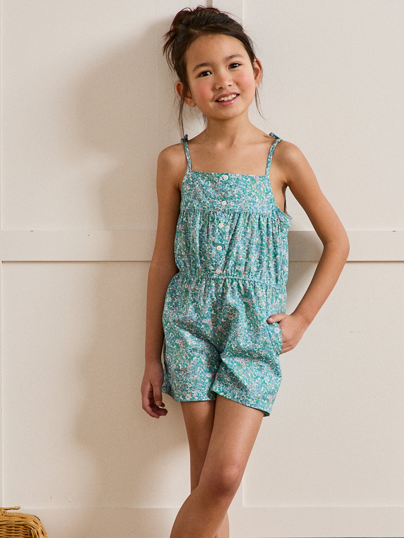 Baby's knit jumpsuit, collar made with Liberty fabric