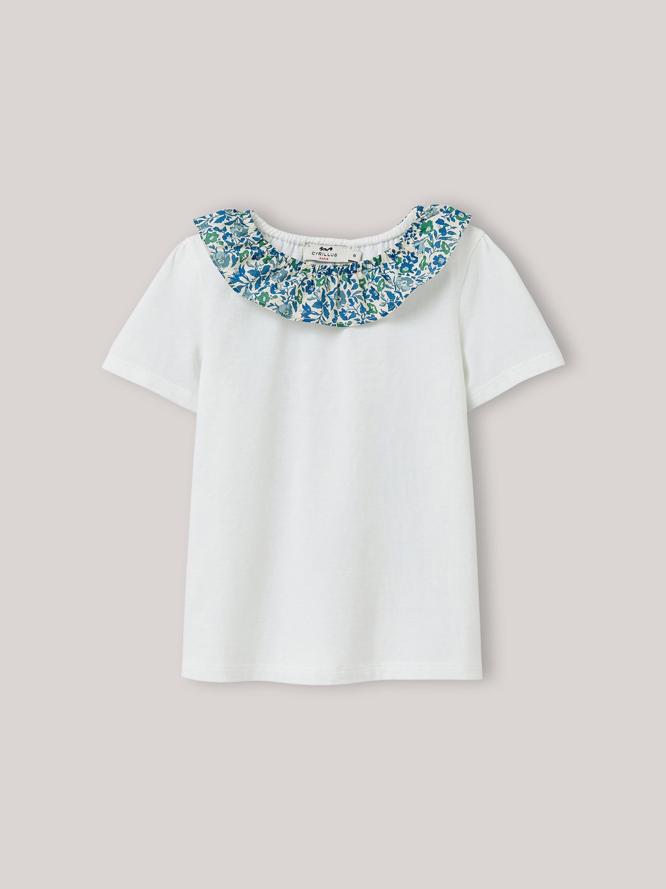 Baby's organic cotton T-shirt, collar made with Liberty fabric