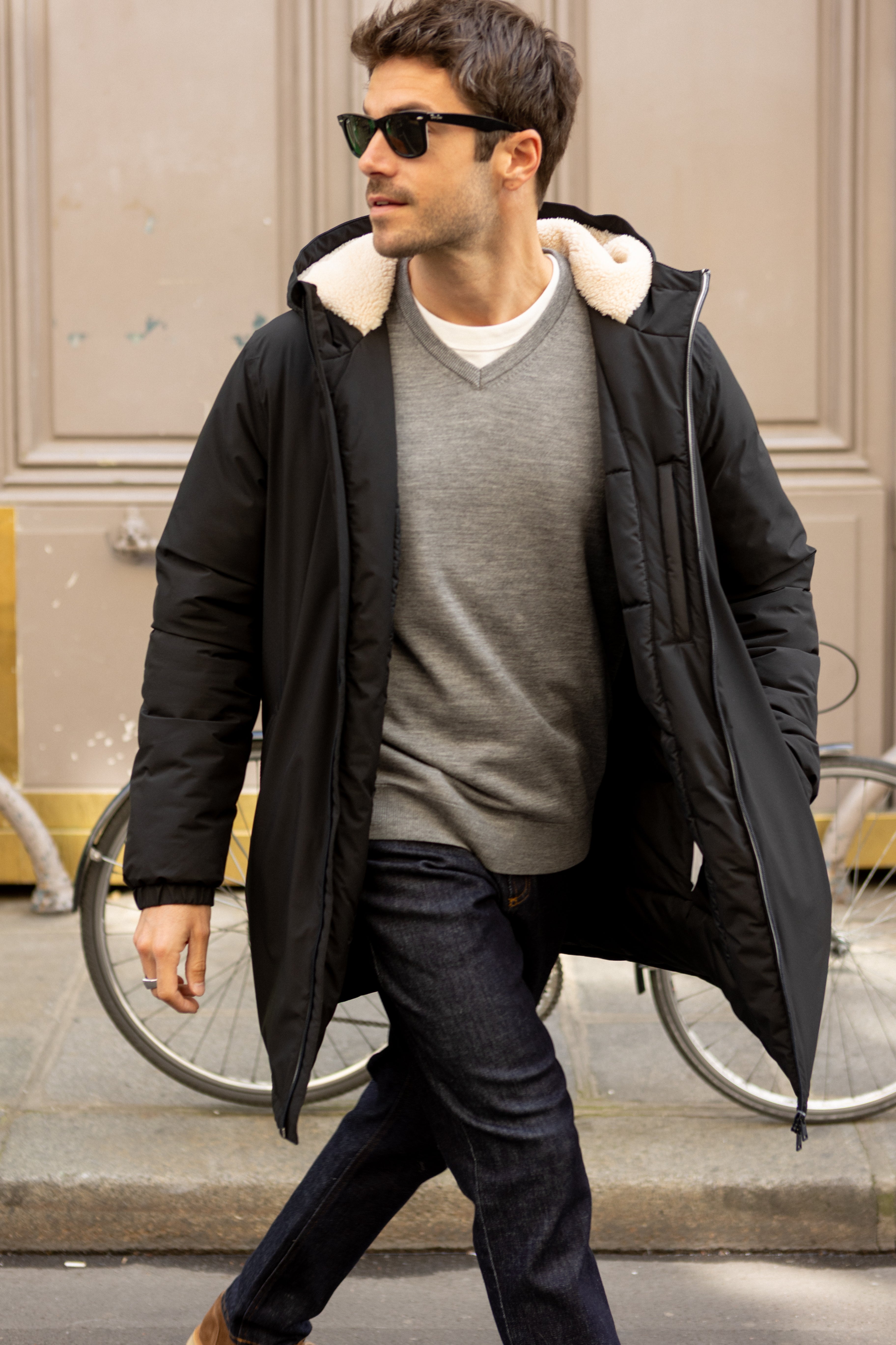 Man's long waterproof parka