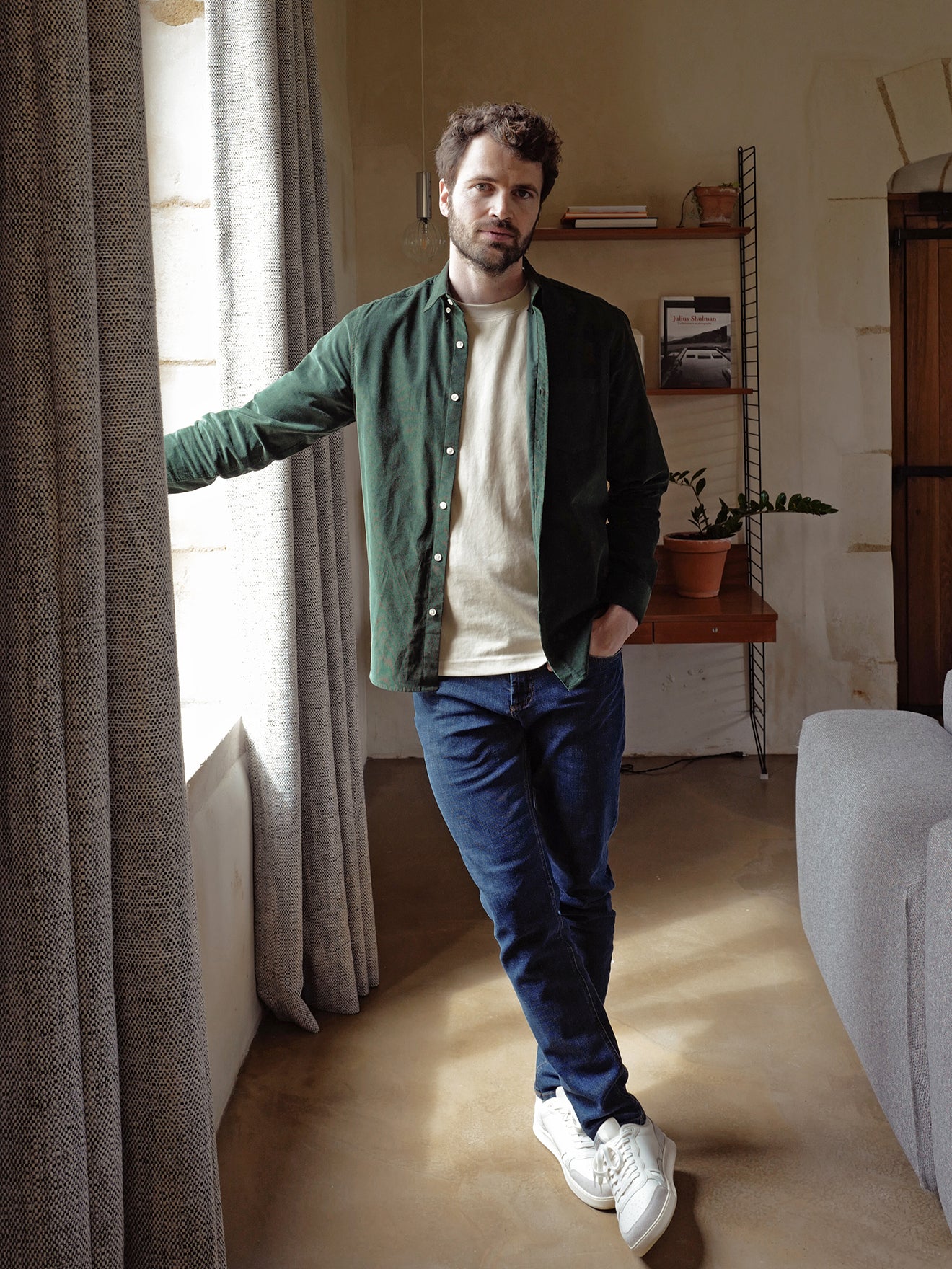 Men's velour shirt with contemporary fit