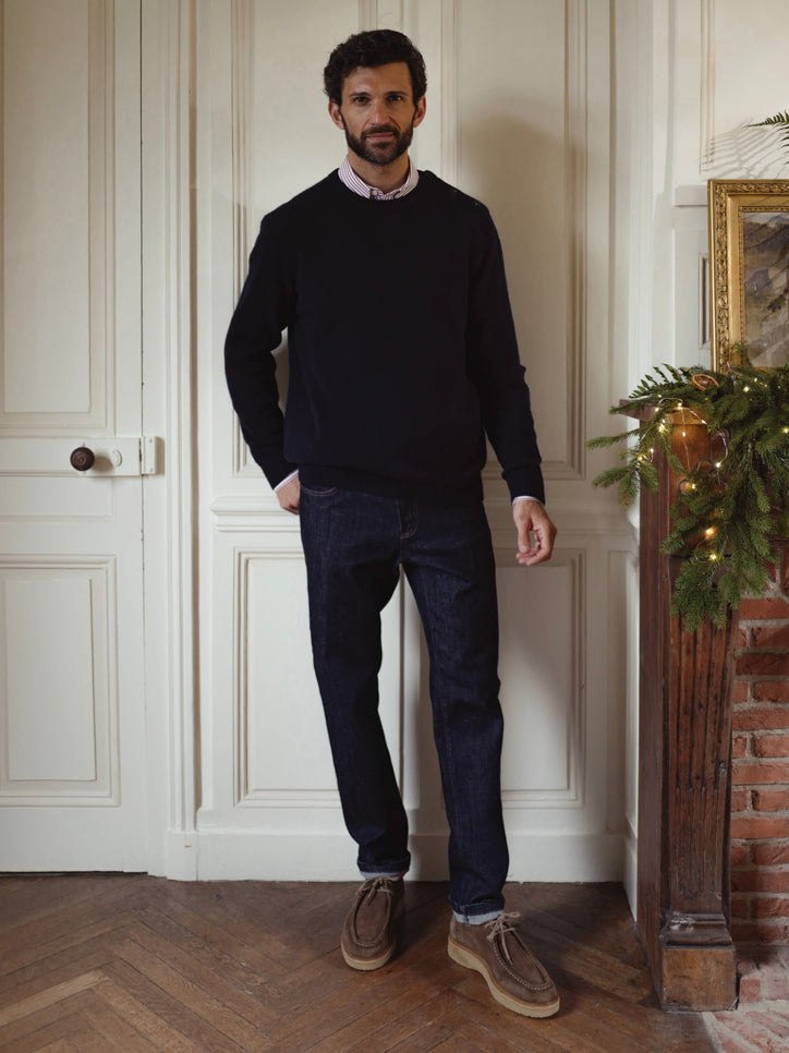Men's merino wool sweater with high neckline