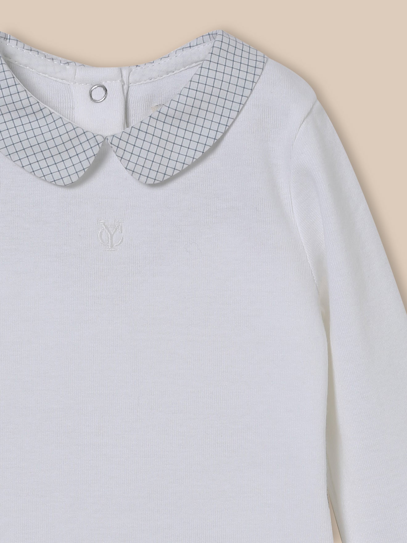 Baby bodysuit with checked collar - Organic cotton