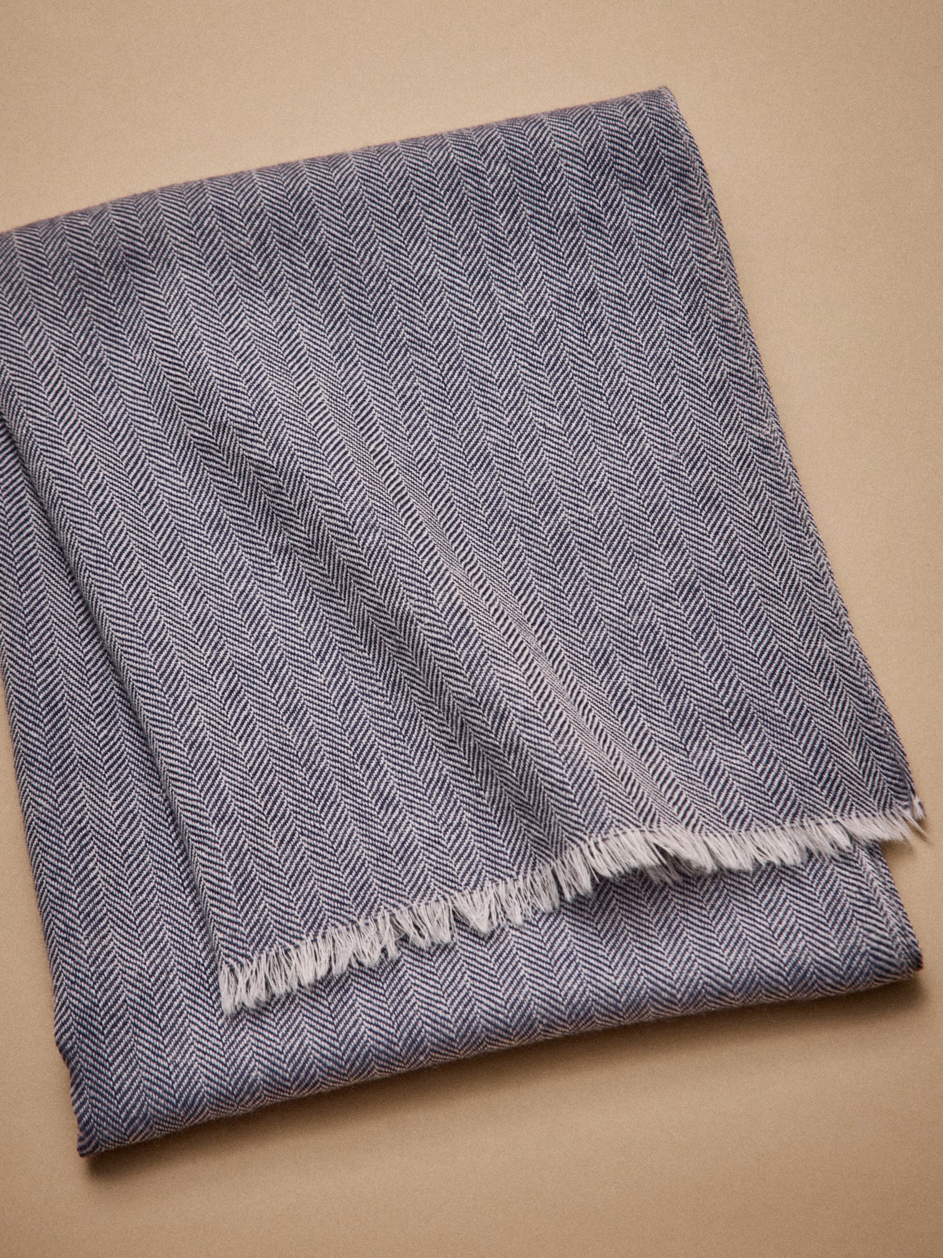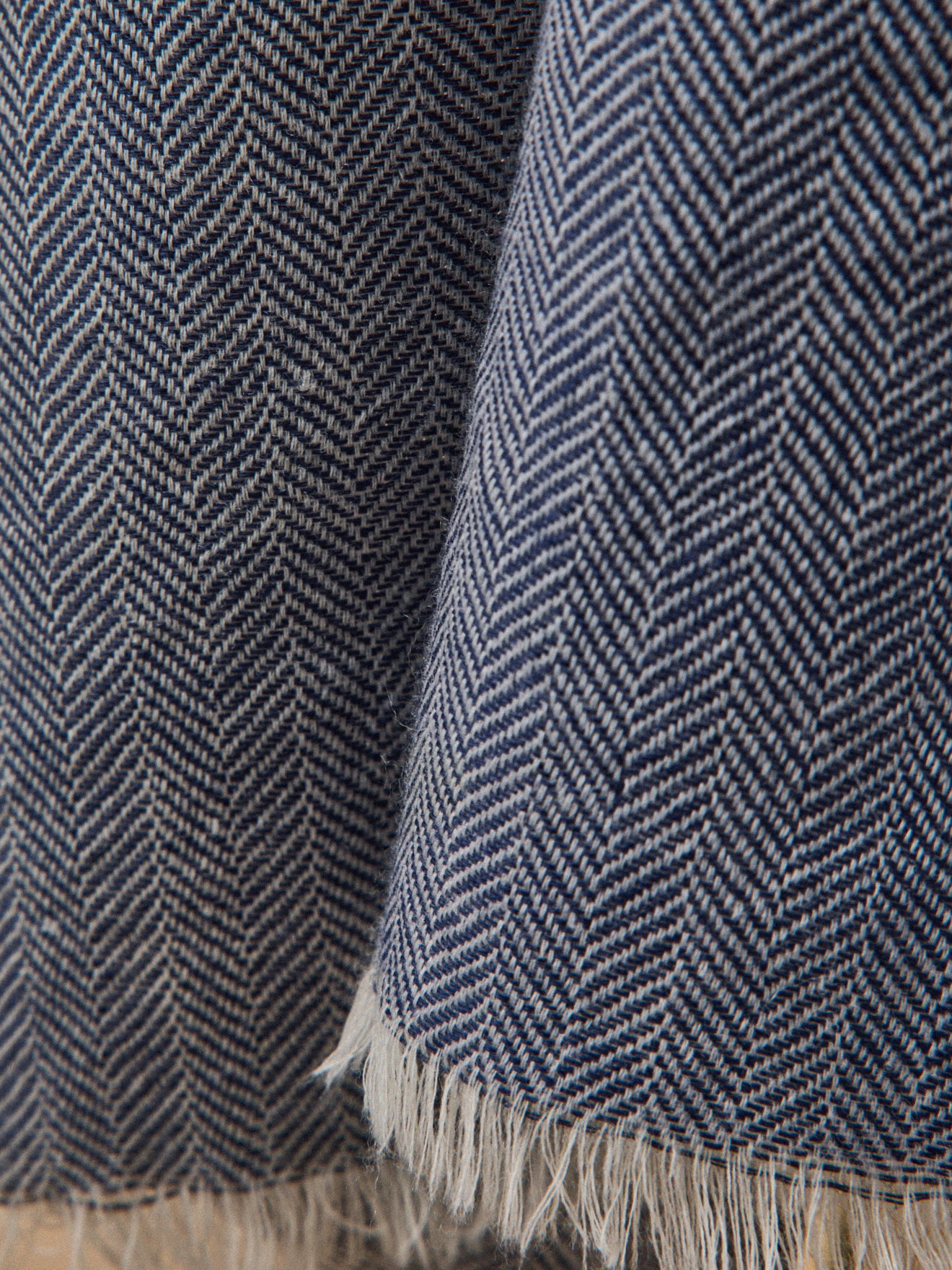 Trendy herringbone on a scarf that's quite thick, quite long and quite warm in modern and elevated green.