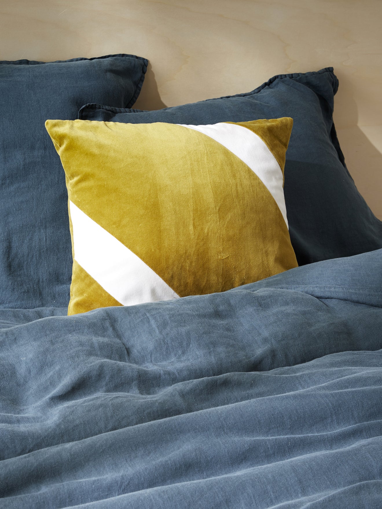Cushion cover composed of velour bands sewn together to form a pretty graphic motif with chic and contemporary colours.