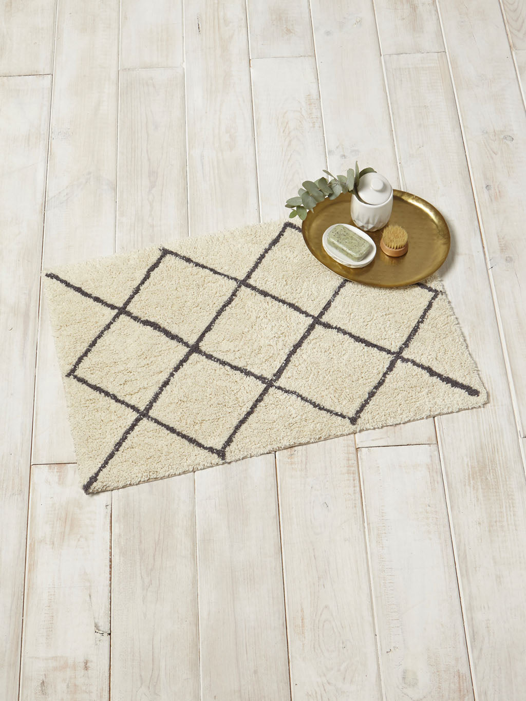 Absorbent cotton bath mat. Covered with a latticework pattern, the Berber-style is quite fashionable.