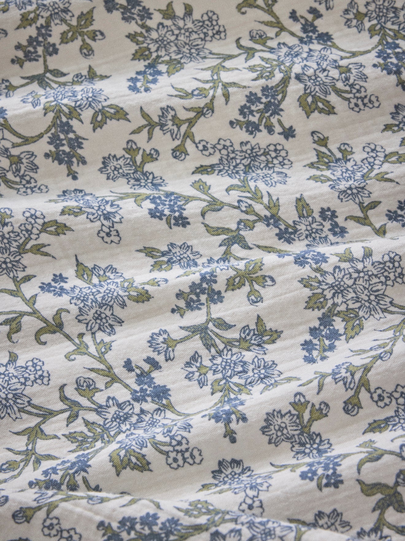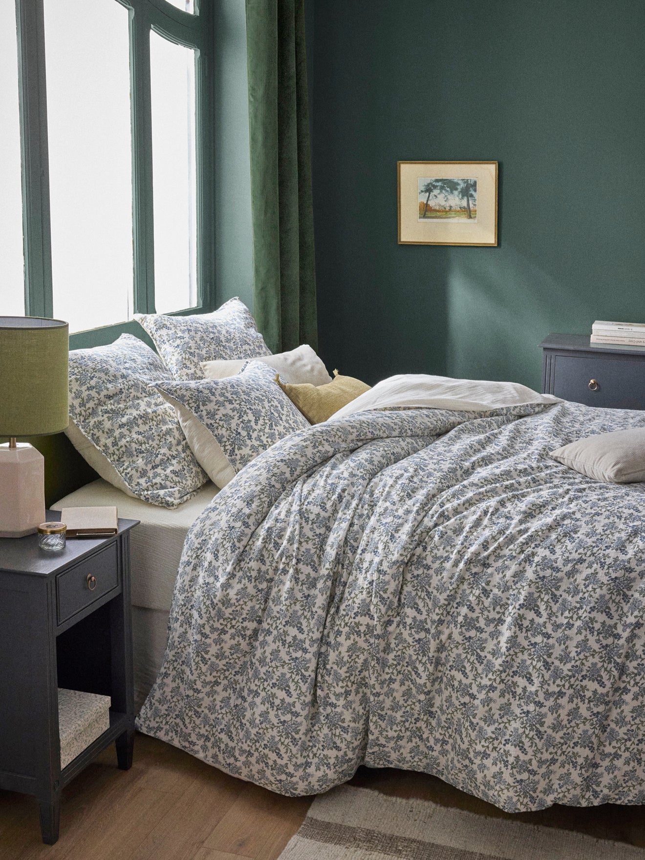 The unique comfort and feel of cotton gauze. This duvet cover is print on one side, plain on the other, with a tuck-in flap. The Armande print is an exclusive Cyrillus design.