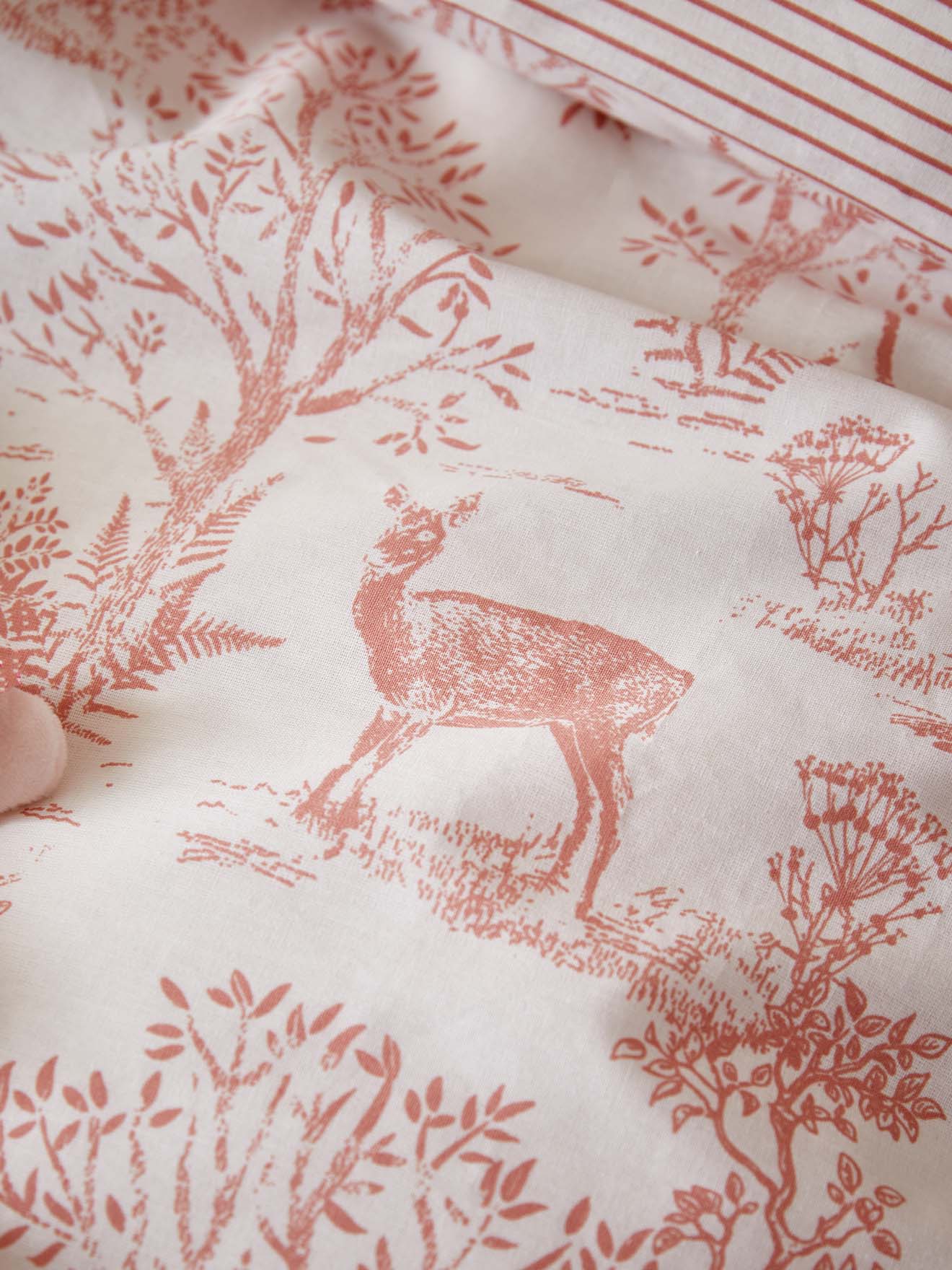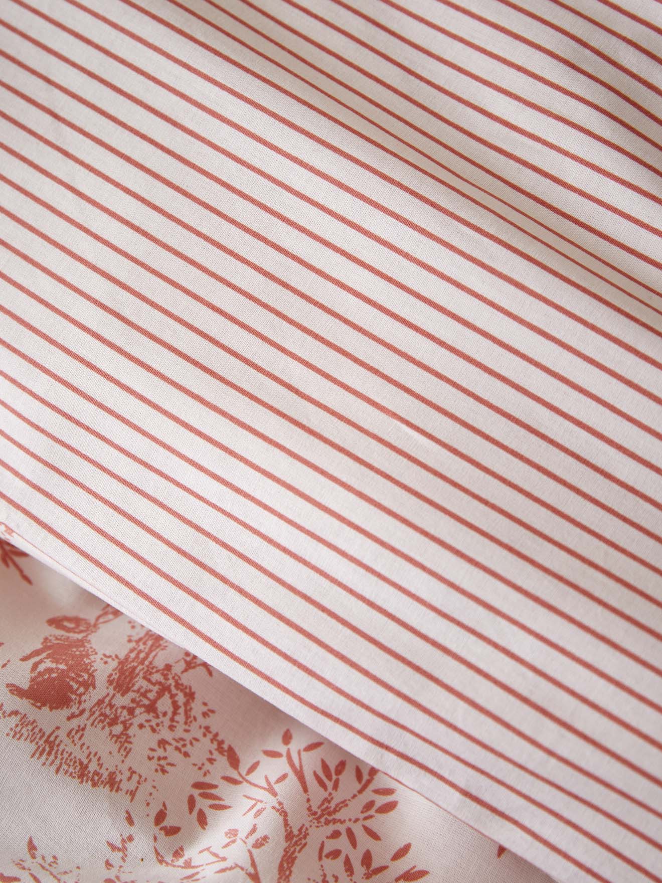 Designrd by our team of stylists, the toile de Jouy inspired motif is timelessly elegant. Narrow stripes on the back. This duvet cover balances heritage and modern style. The tuck-in flap keeps the duvet in place.