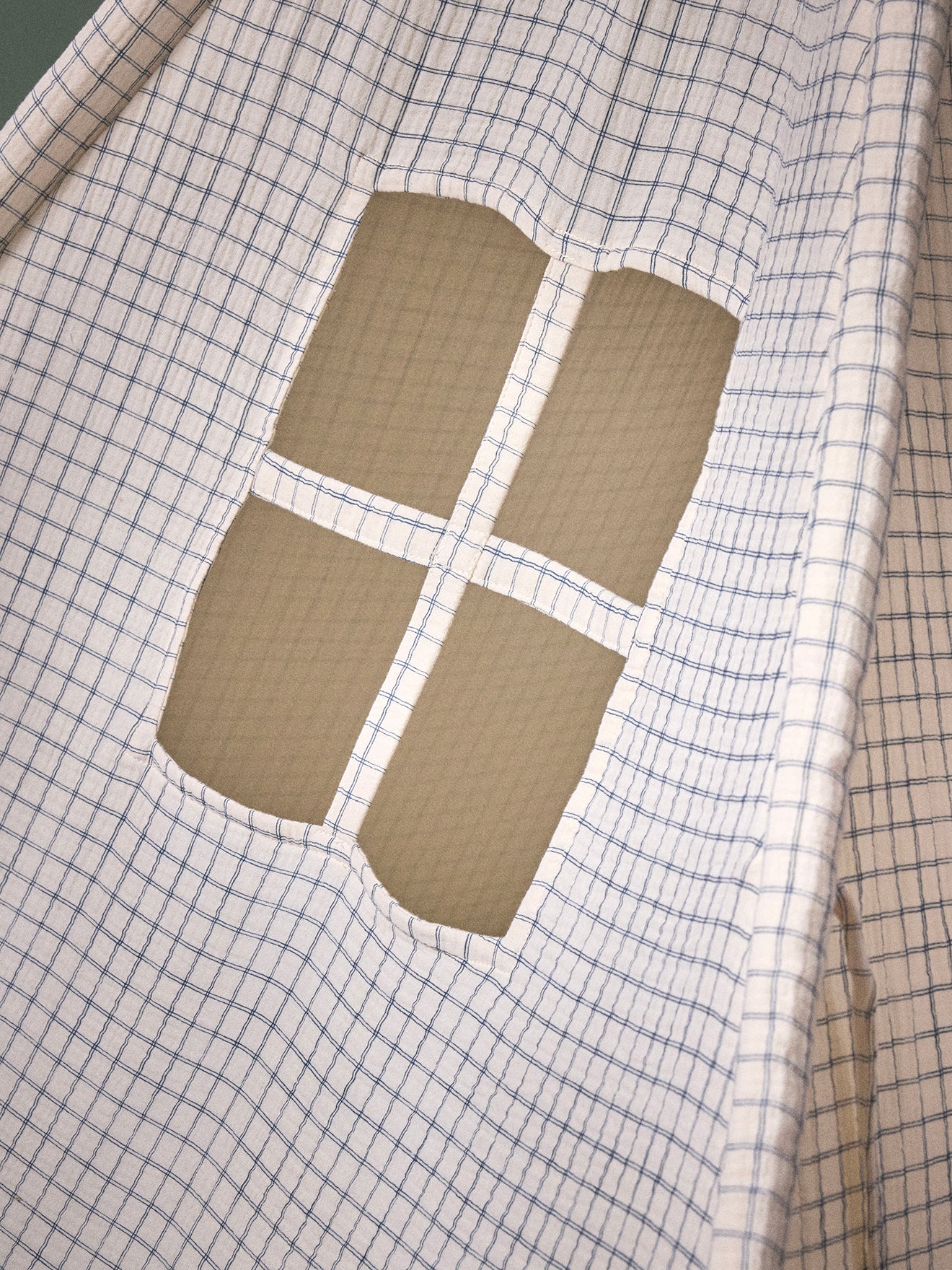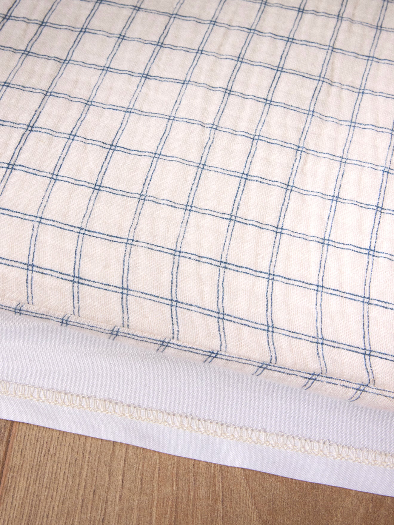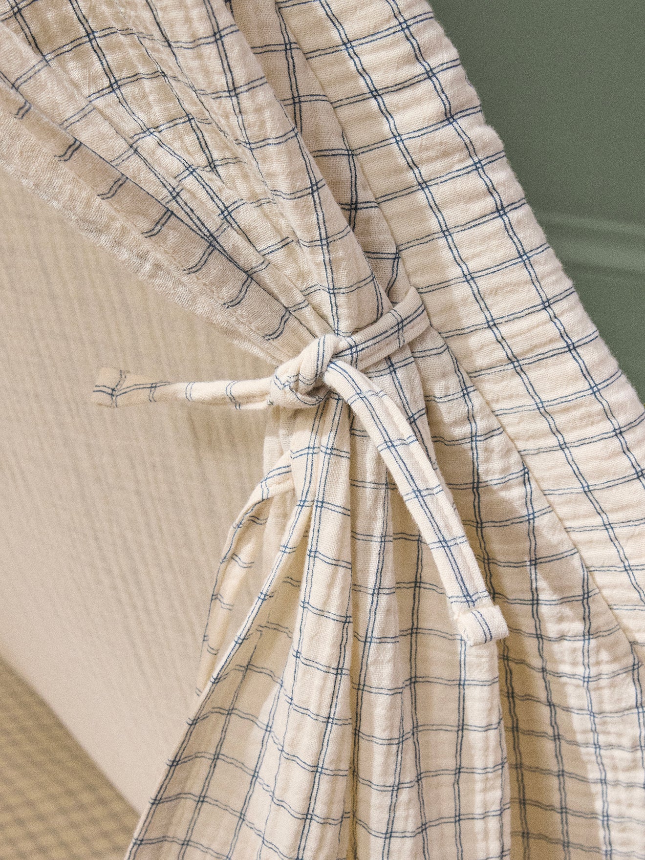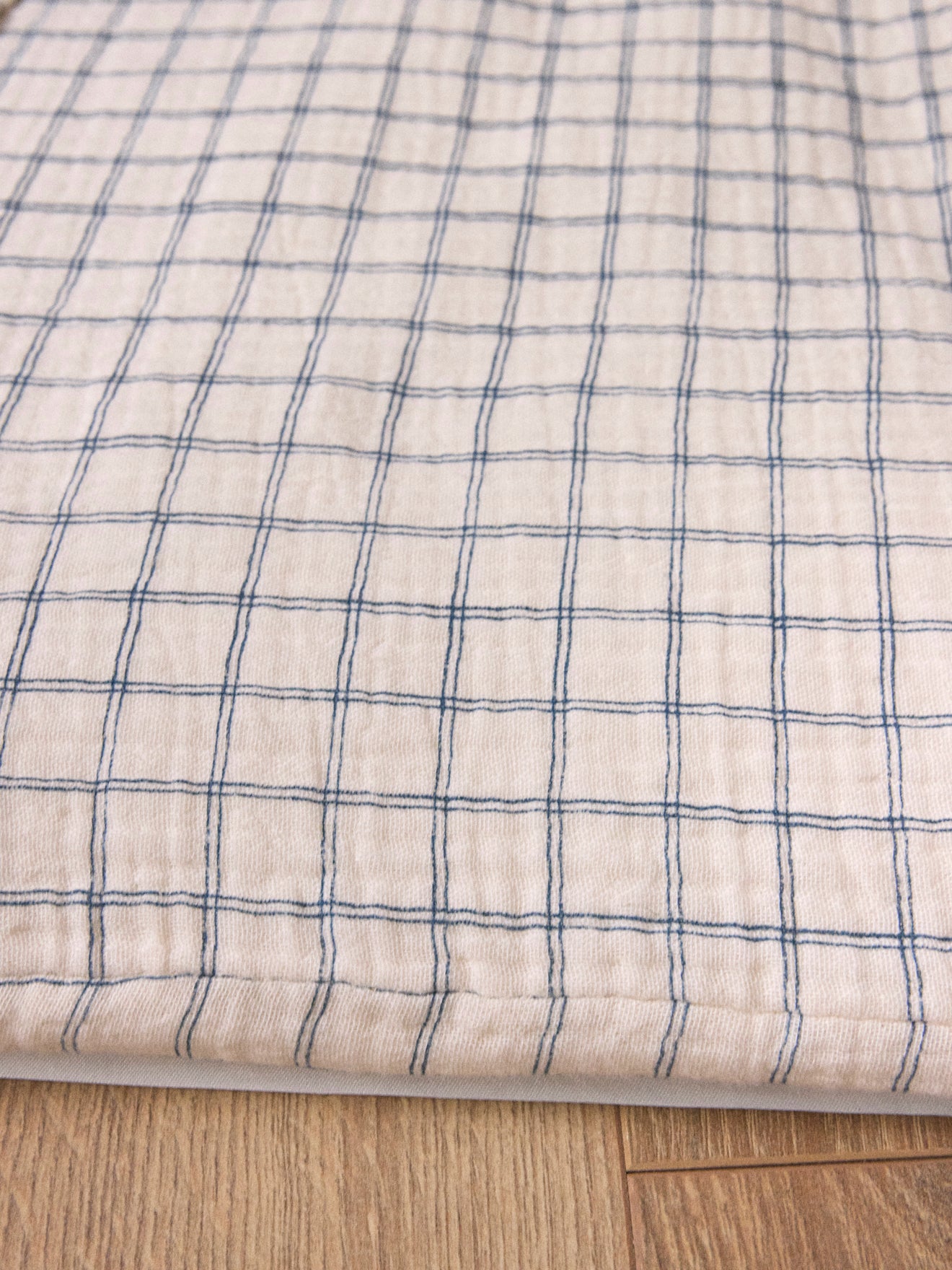 Tissu 100% gaze de coton. Strucutre en bois de pin. Matelas 100% coton, garnissage 100% polyester.