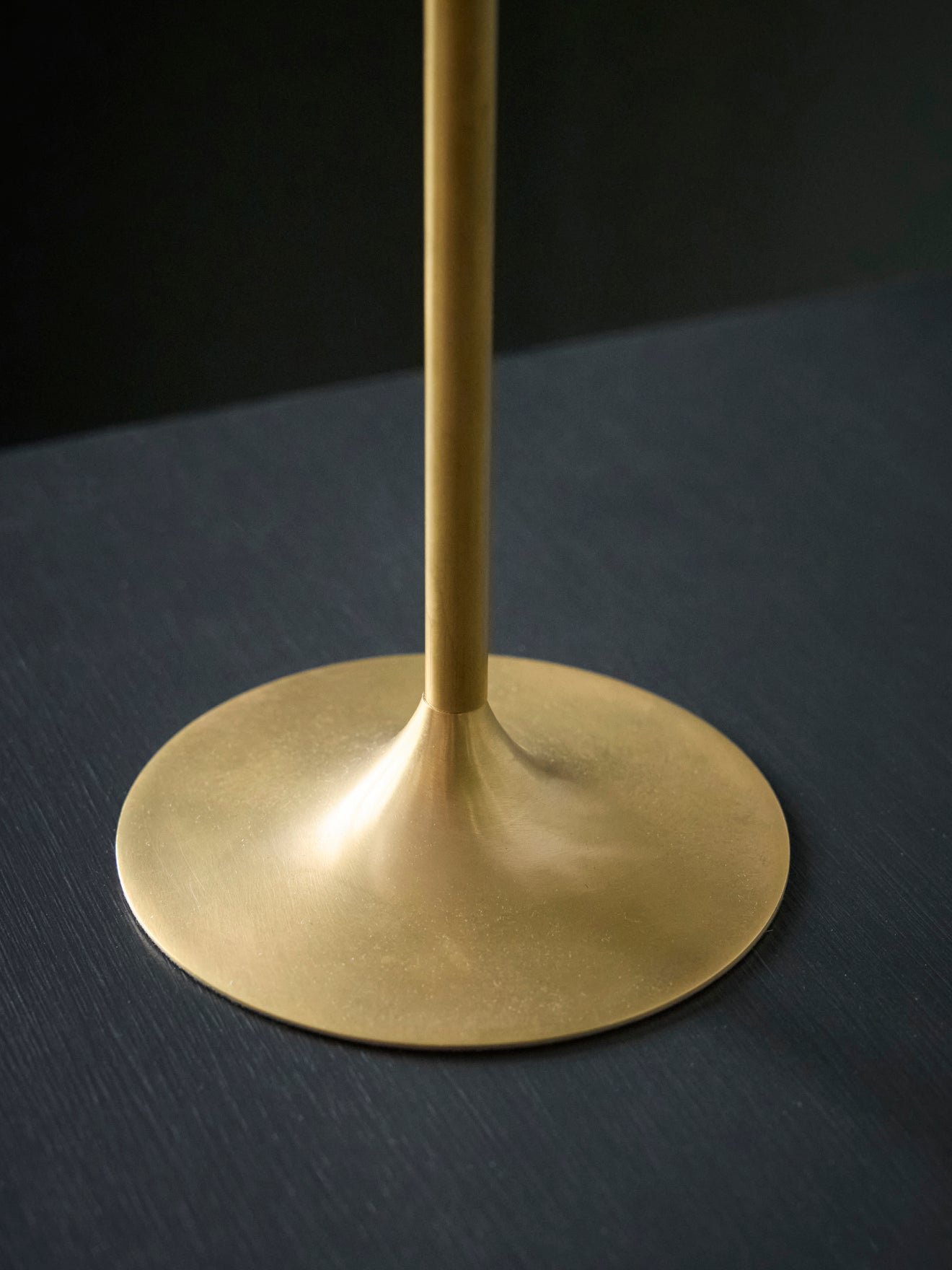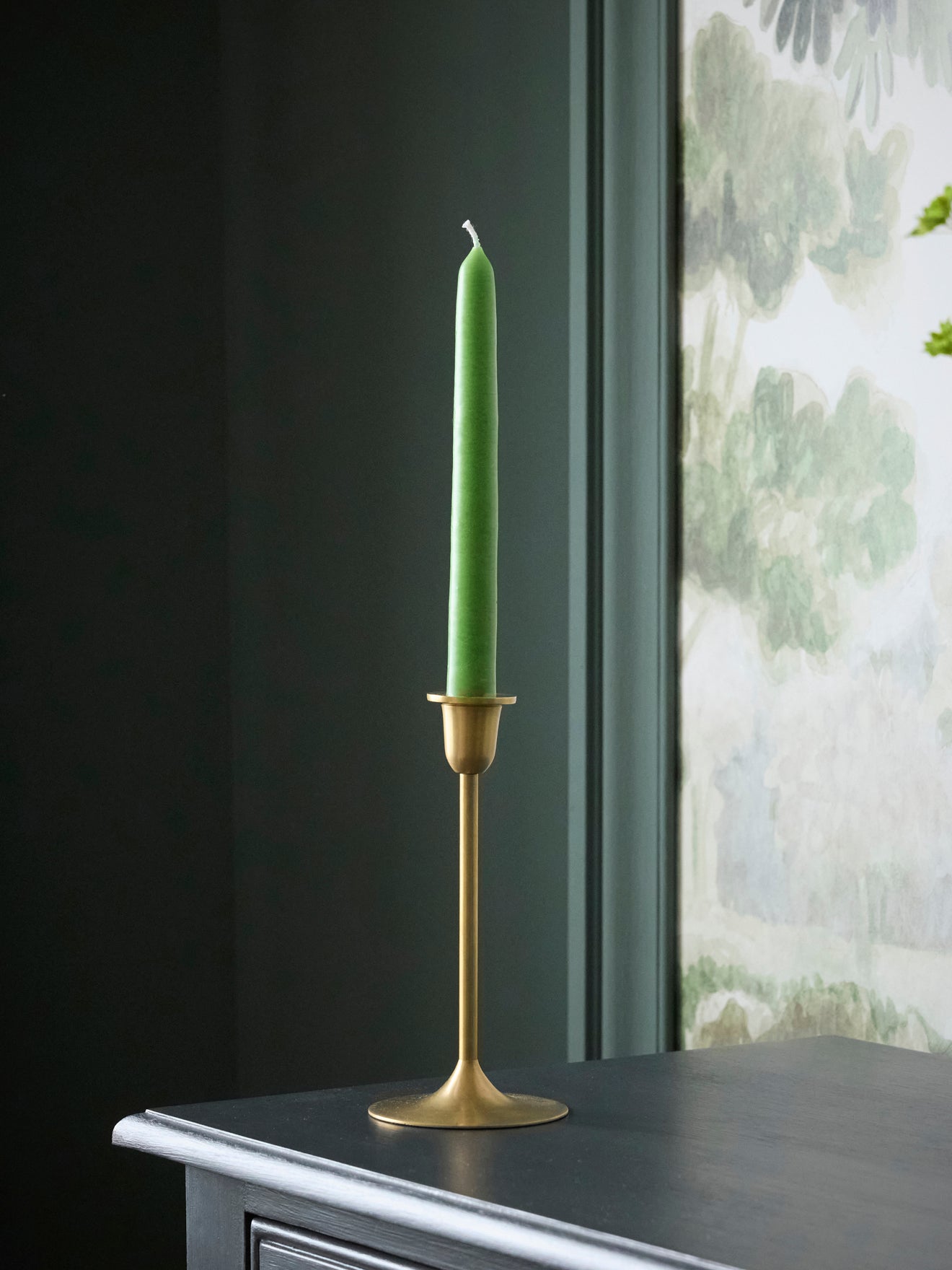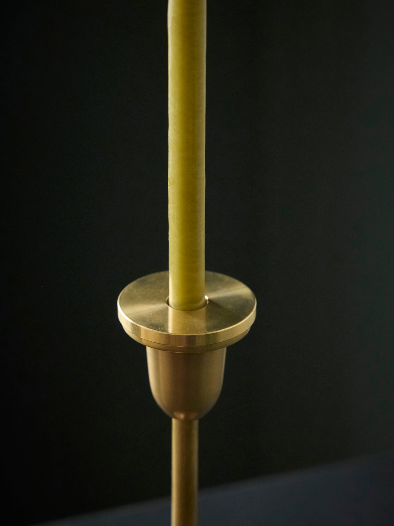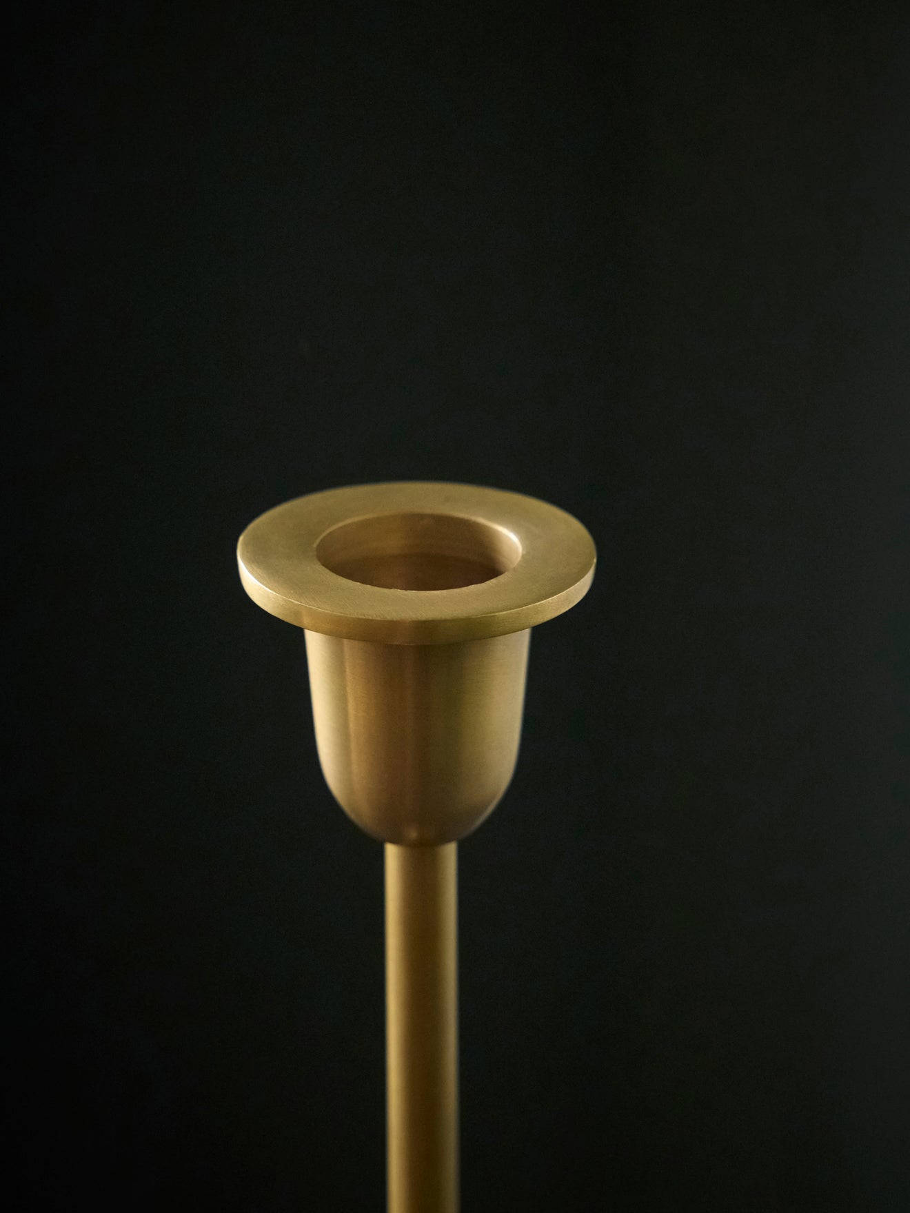 Elegant and slender brass candle holder to accommodate a standard candle.
