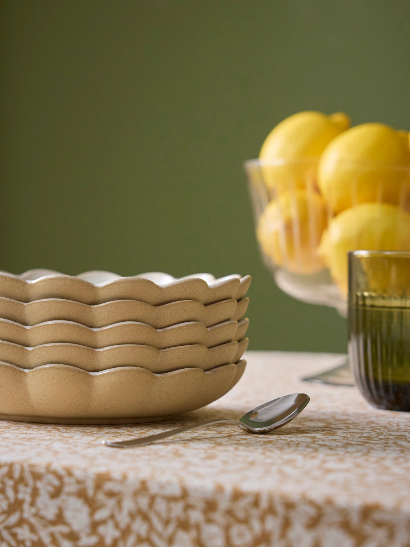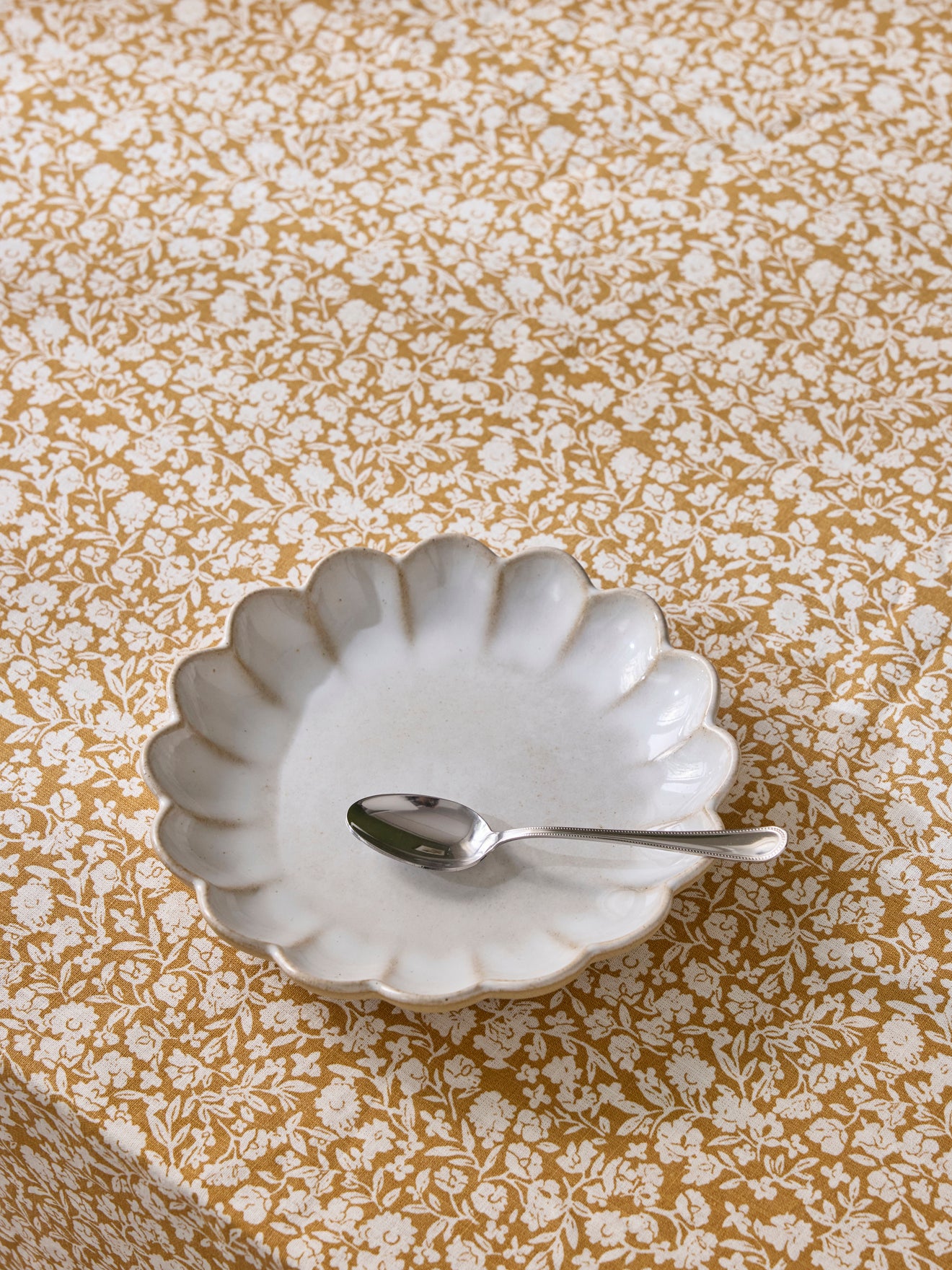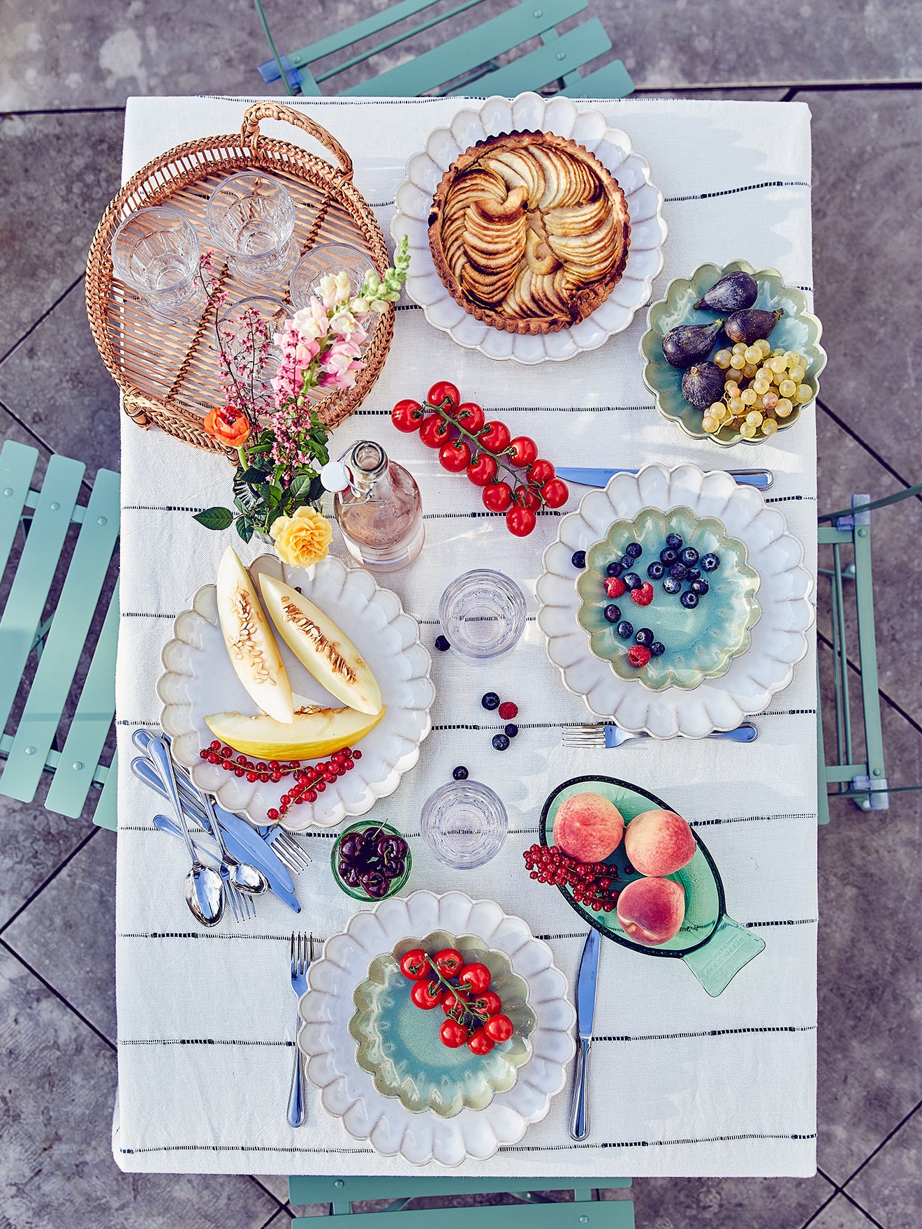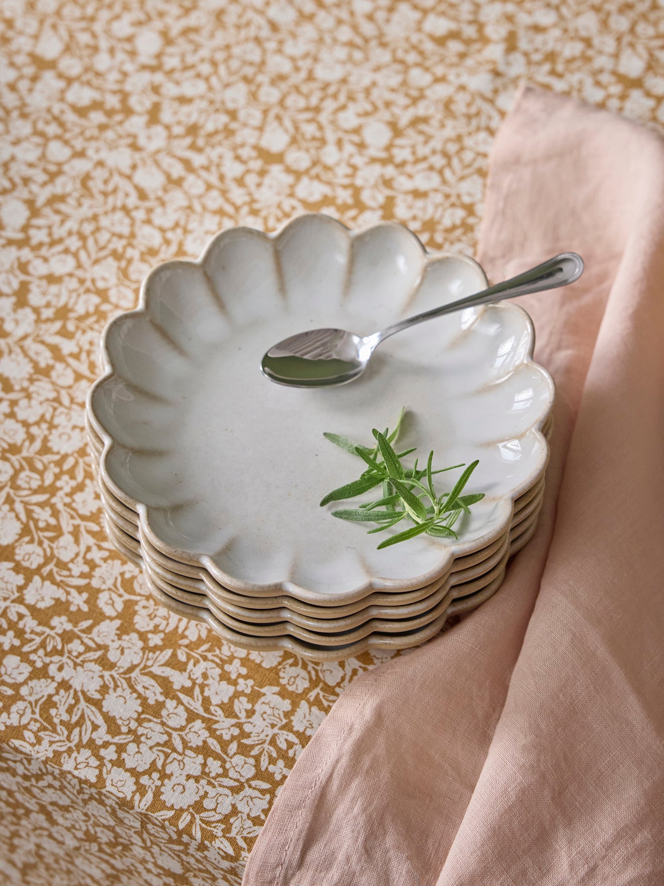 The Marrakesh range is produced by the stoneware brand Costa Nova. Originally from the charming village of the same name located on the Portuguese coast, Costa Nova is known for the quality and durability of its products. The Marrakesh range was designed by the French floral artist Christian Tortu. It combines sustainable artisanal production with the essence of nature and Moroccan mystique. The Marrakesh dessert or starter plate has a distinctive flower shape.