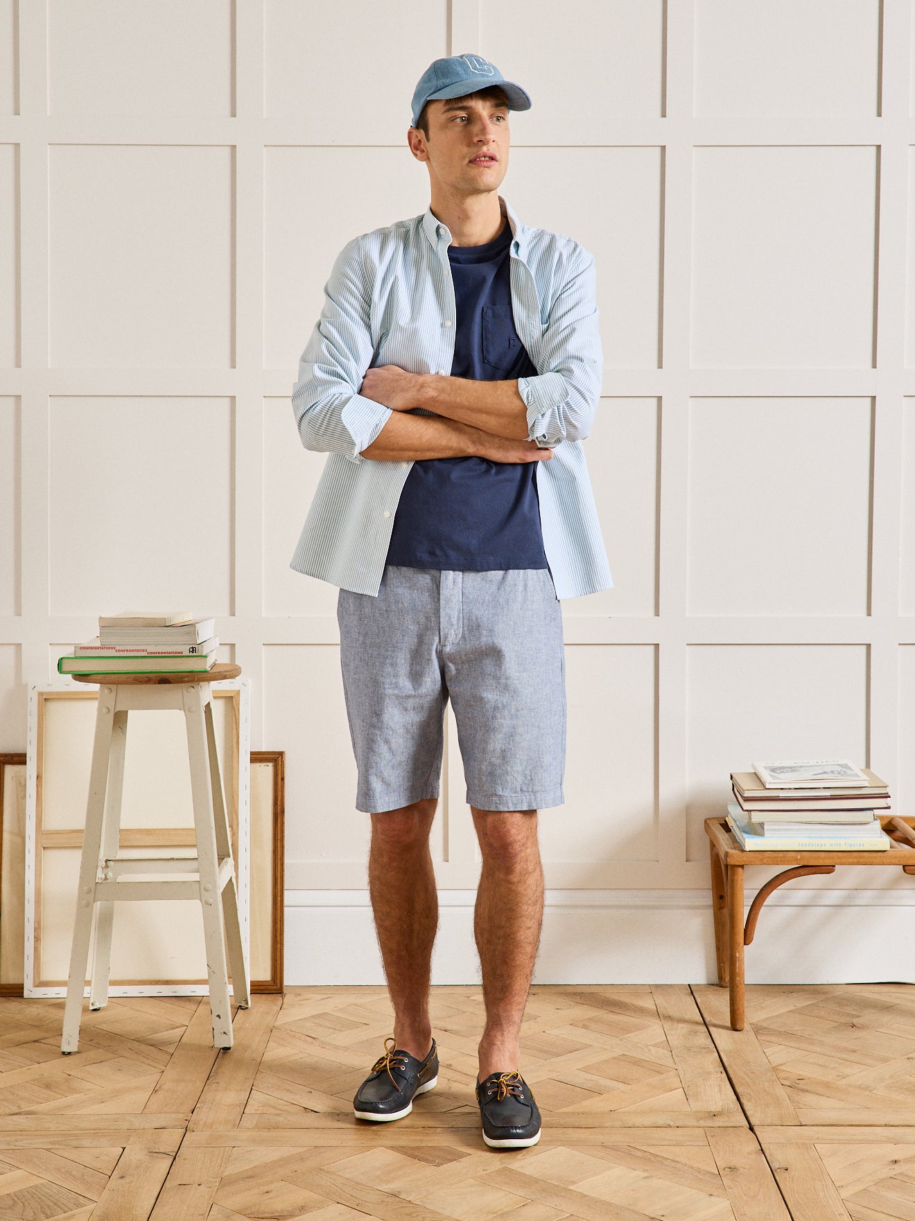 - Ribbed edging along the round neckline, breast pocket with embroidered C, short sleeves, straight hem