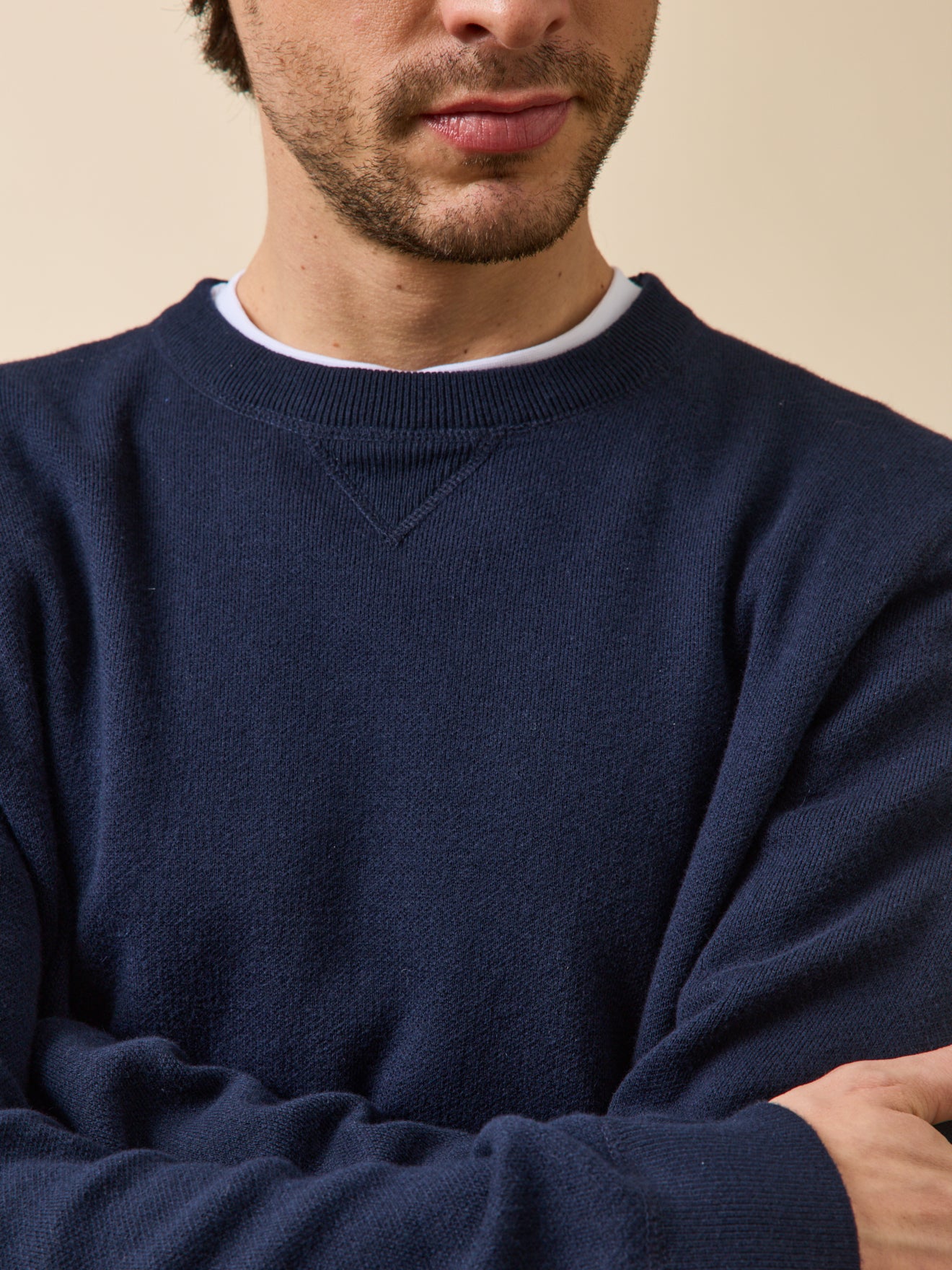 As comfortable as a sweater, as casual as a sweatshirt. Knit in a dense stitch and cotton and cashmere yarn, this cool chic basic is quite simply a must in the men's wardrobe.