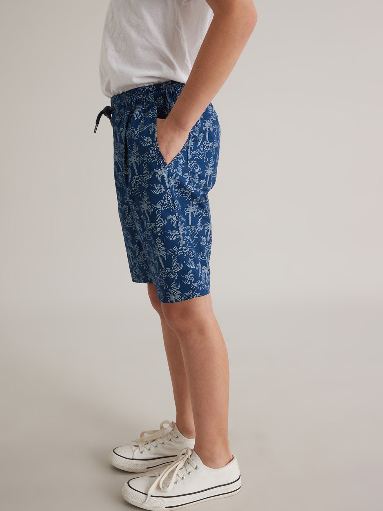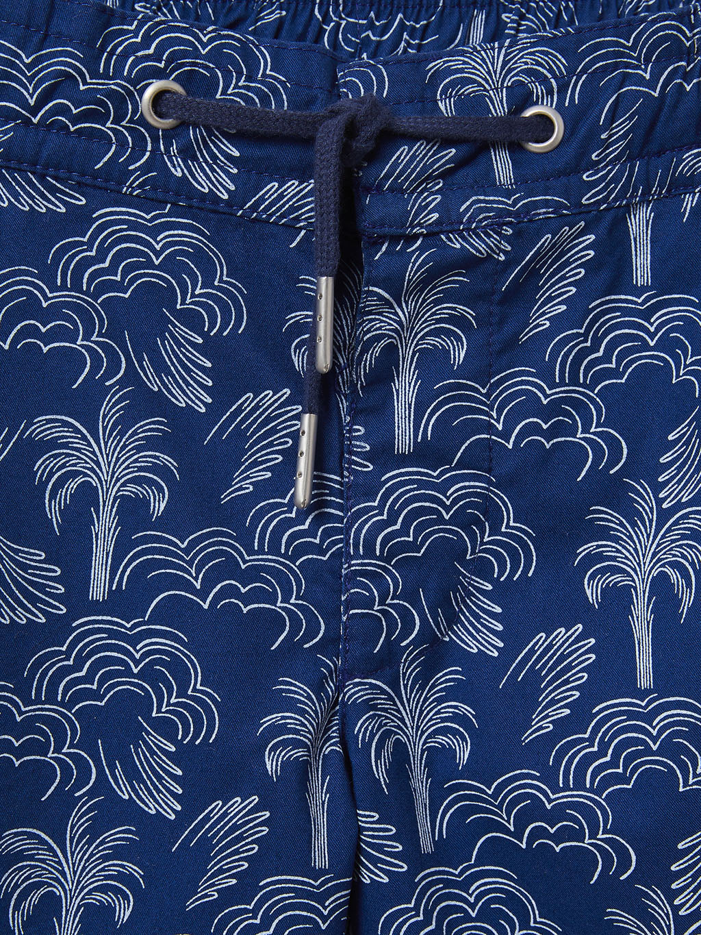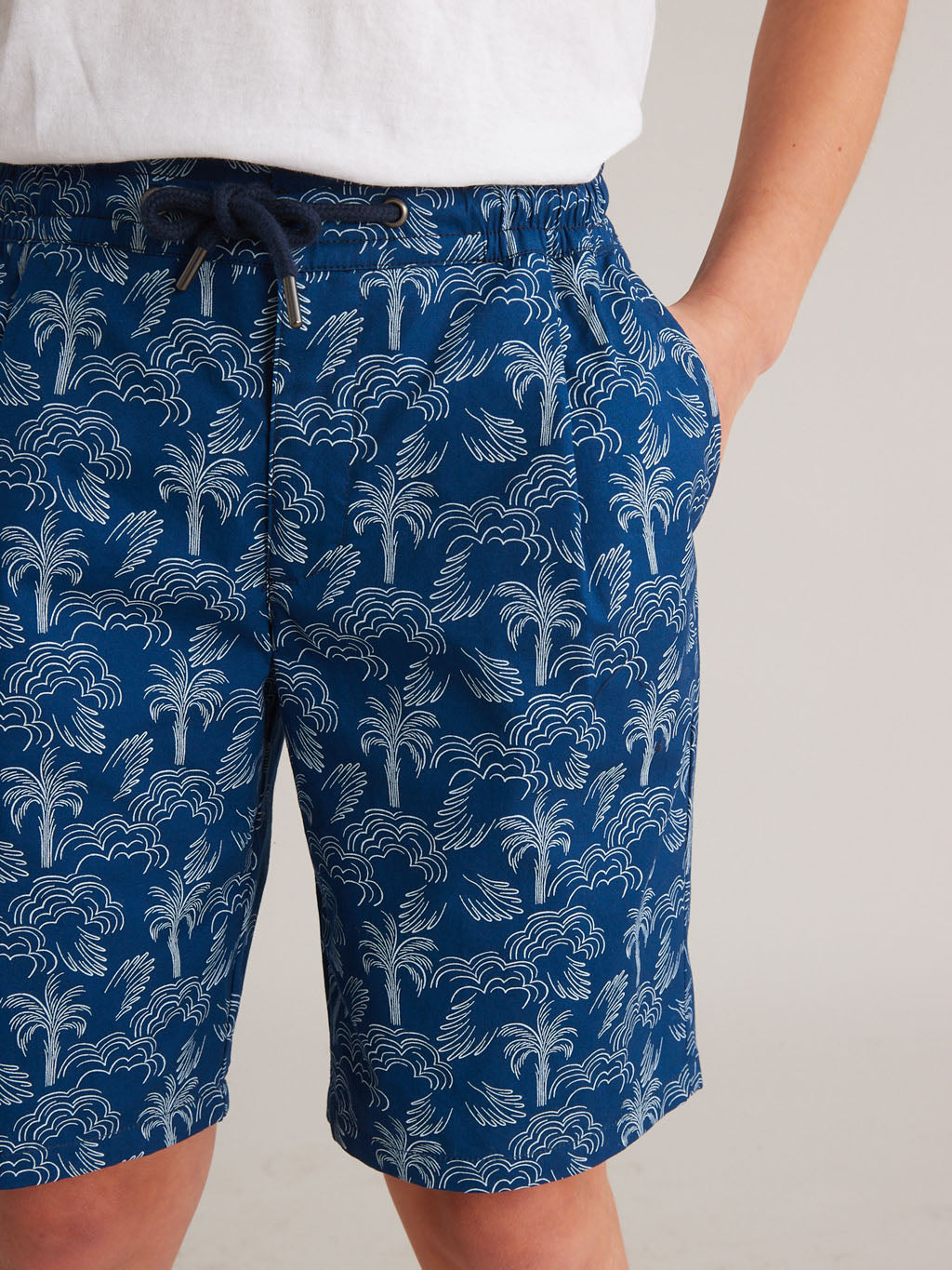 A comfortable elastic waistband and an original and exclusive motif. Easy to mix and match Bermuda shorts that are also pleasant to wear.