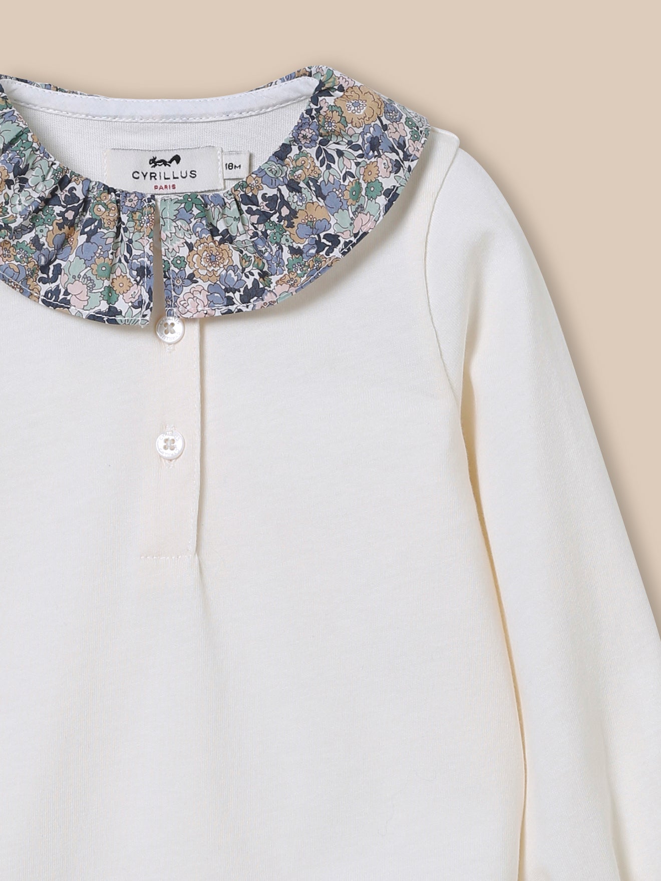 Baby's organic cotton T-shirt, collar made with Liberty fabric