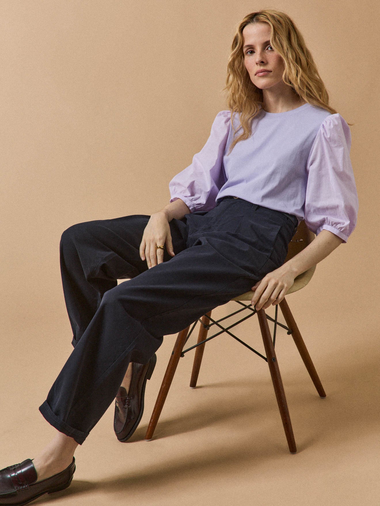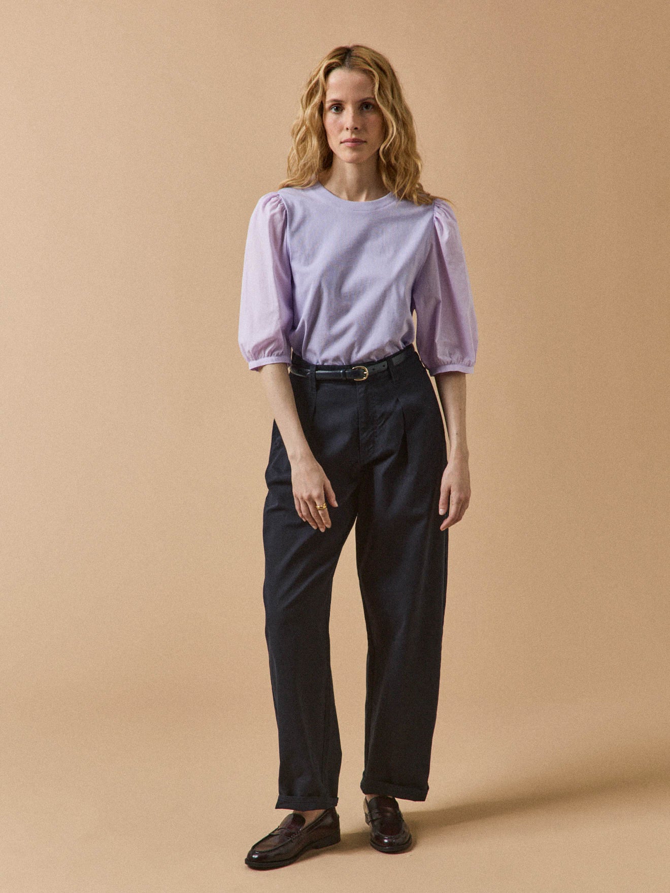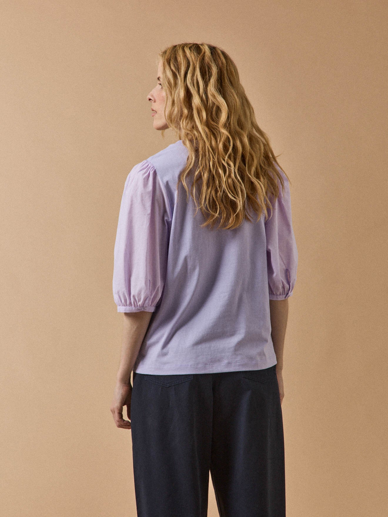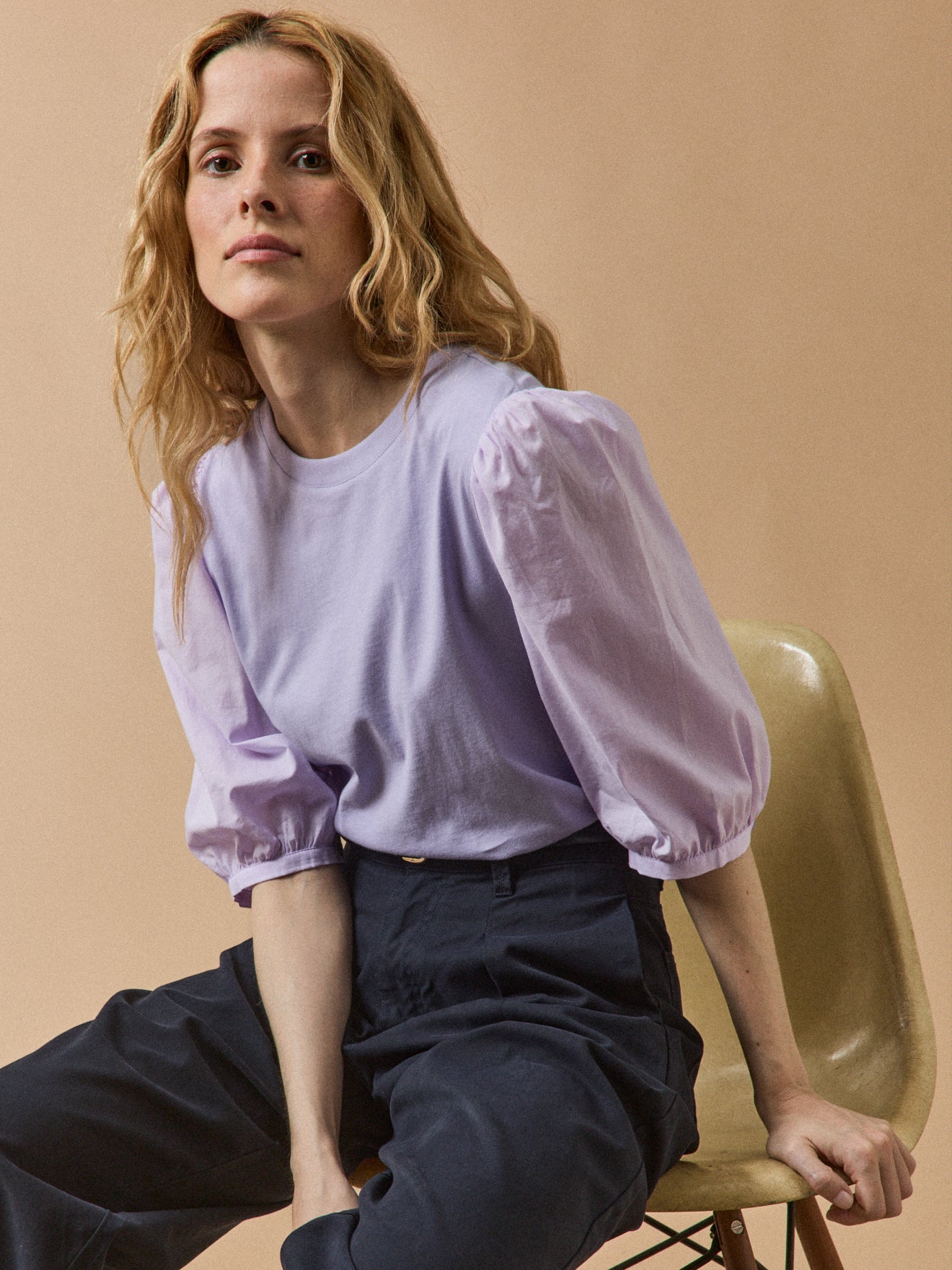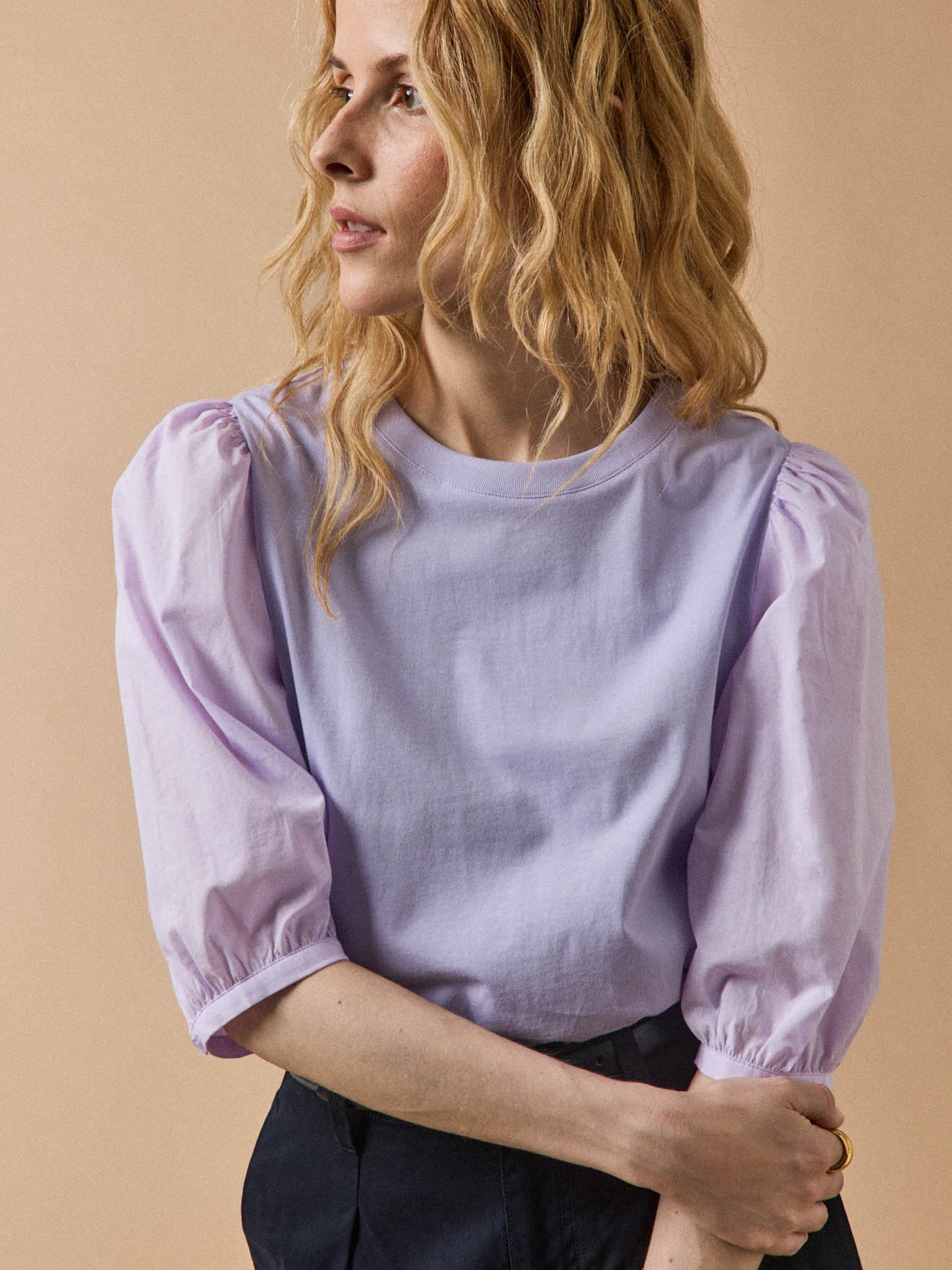 The short cotton voile balloon sleeves add a subtle and feminine note to this T-shirt for everyday wear. Made in Portugal.