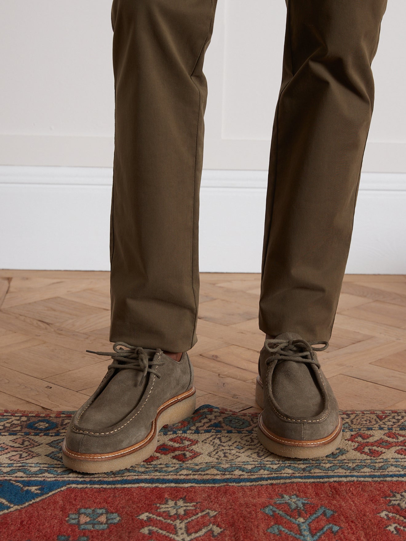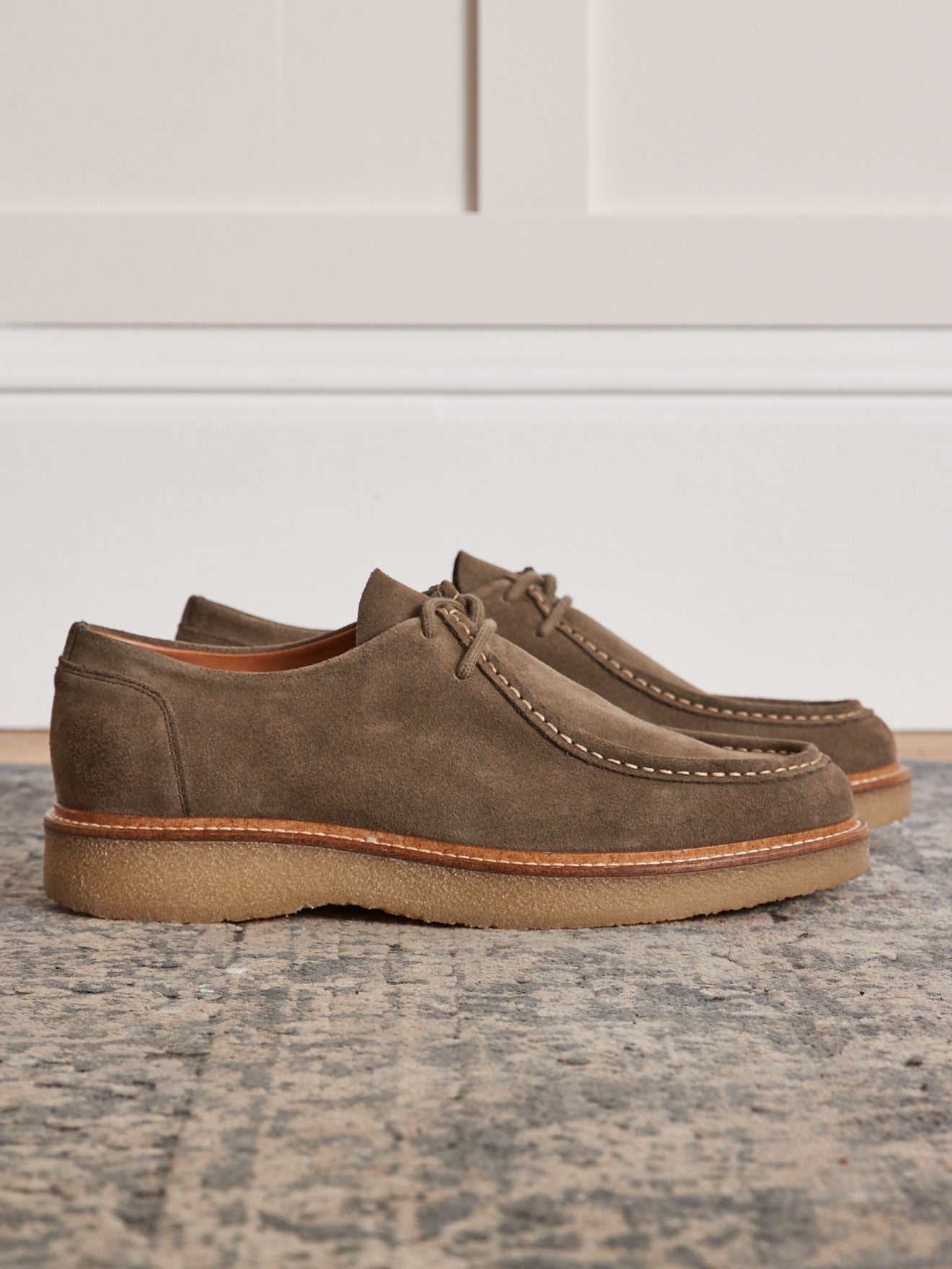 Elles jouent la tendance kaki sur un cuir velouté. Aussi à l'aise en ville qu'en week-end, les derbies mettent un point final à une silhouette sport chic.