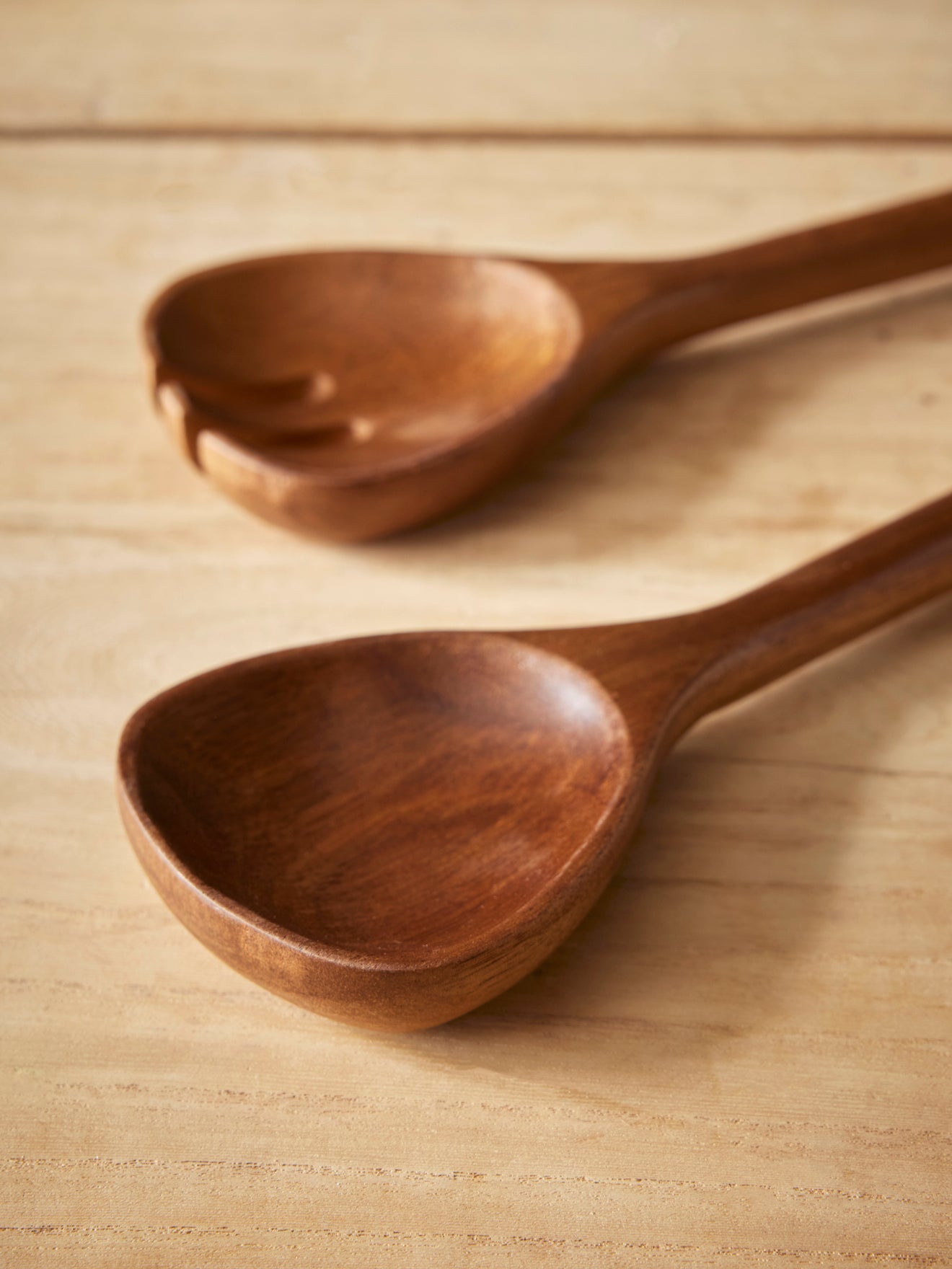 Couverts à salade fabriqués en bois d'acacia massif. Ils sont intemporels et ultra-résistants. Une valeur sûre au charme naturel.