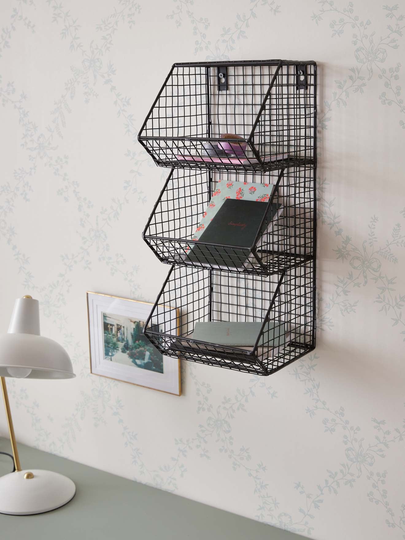 Étagère murale en métal filaire composée de 3 casiers. Un rangement déco d'inspiration industrielle.
