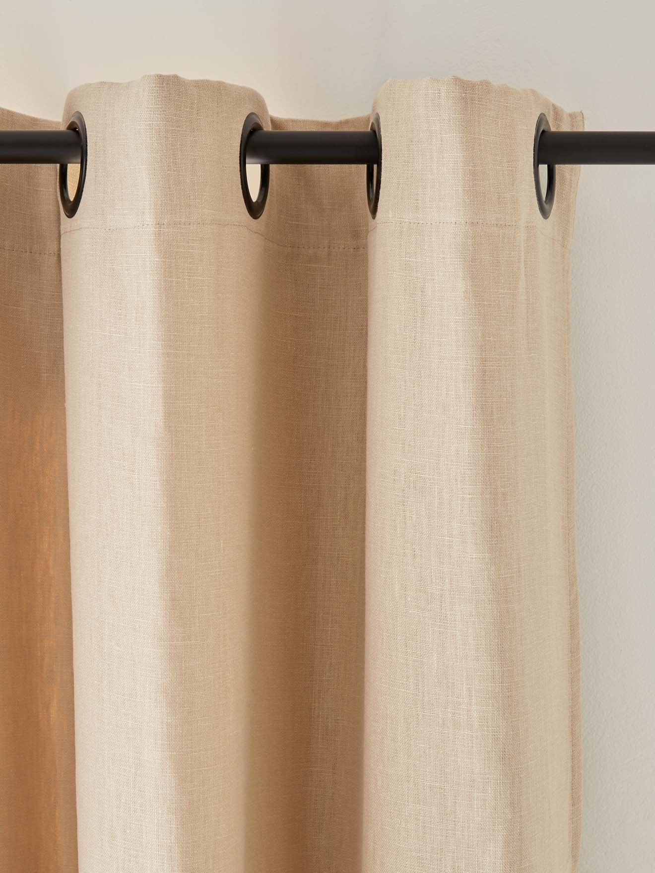 Rideau en lin épais et aux finitions soignées. Sa doublure ton sur ton occulte la lumière en toute discrétion. Ce rideau opaque se décline dans une palette de coloris délicats et actuels. Les oeillets noirs accentuent cette touche de modernité.