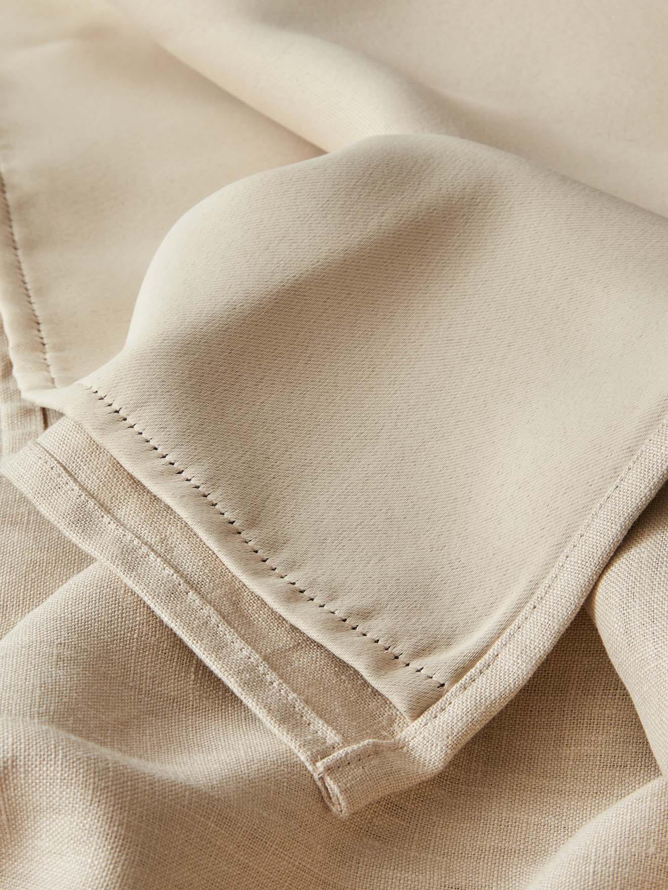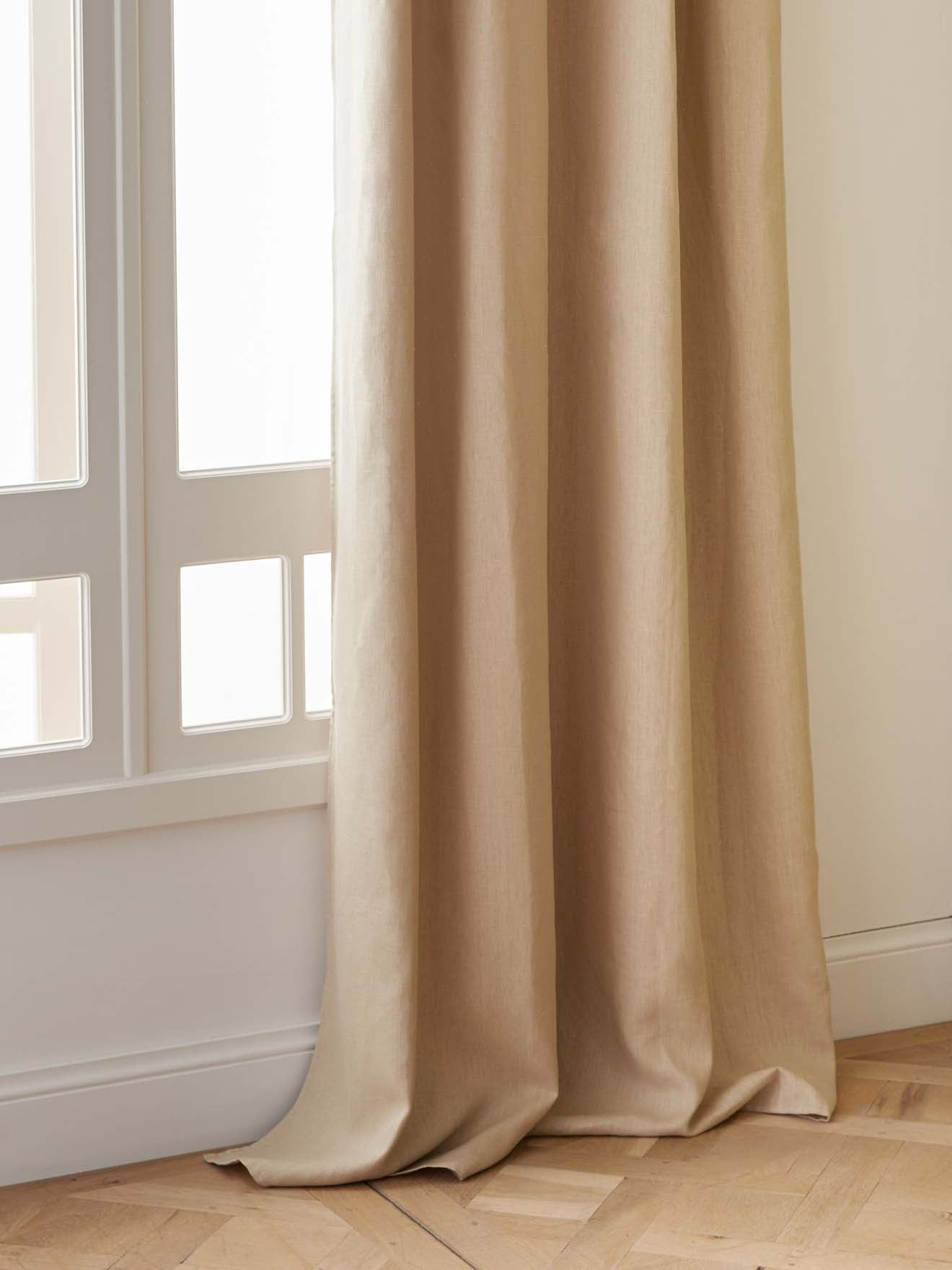 Important : Pour les coloris lin et blanc cassé, nous avons choisi une doublure tamisante afin de ne pas altérer la couleur du lin. Cette doublure n’est pas occultante mais diminue considérablement la lumière.