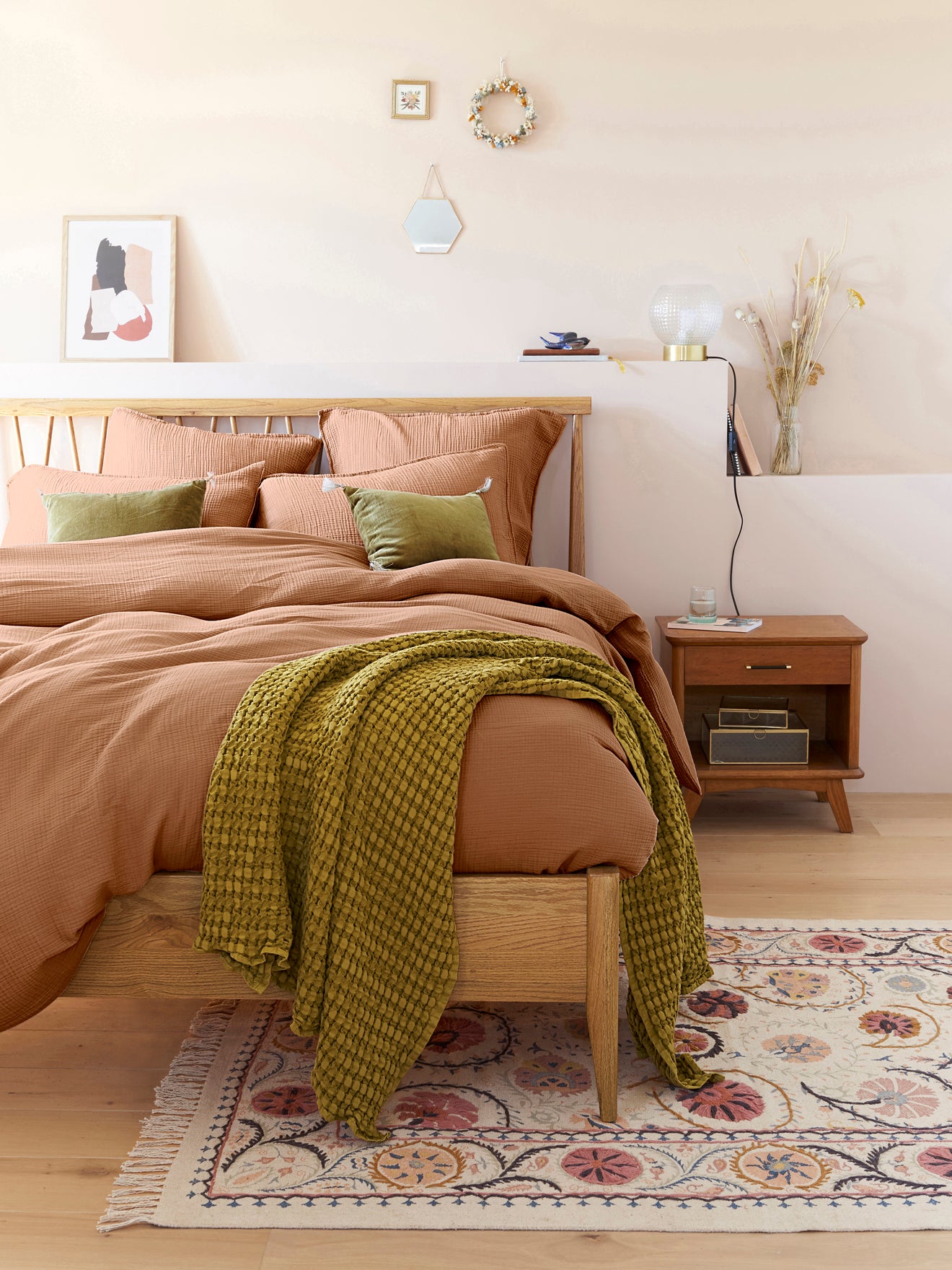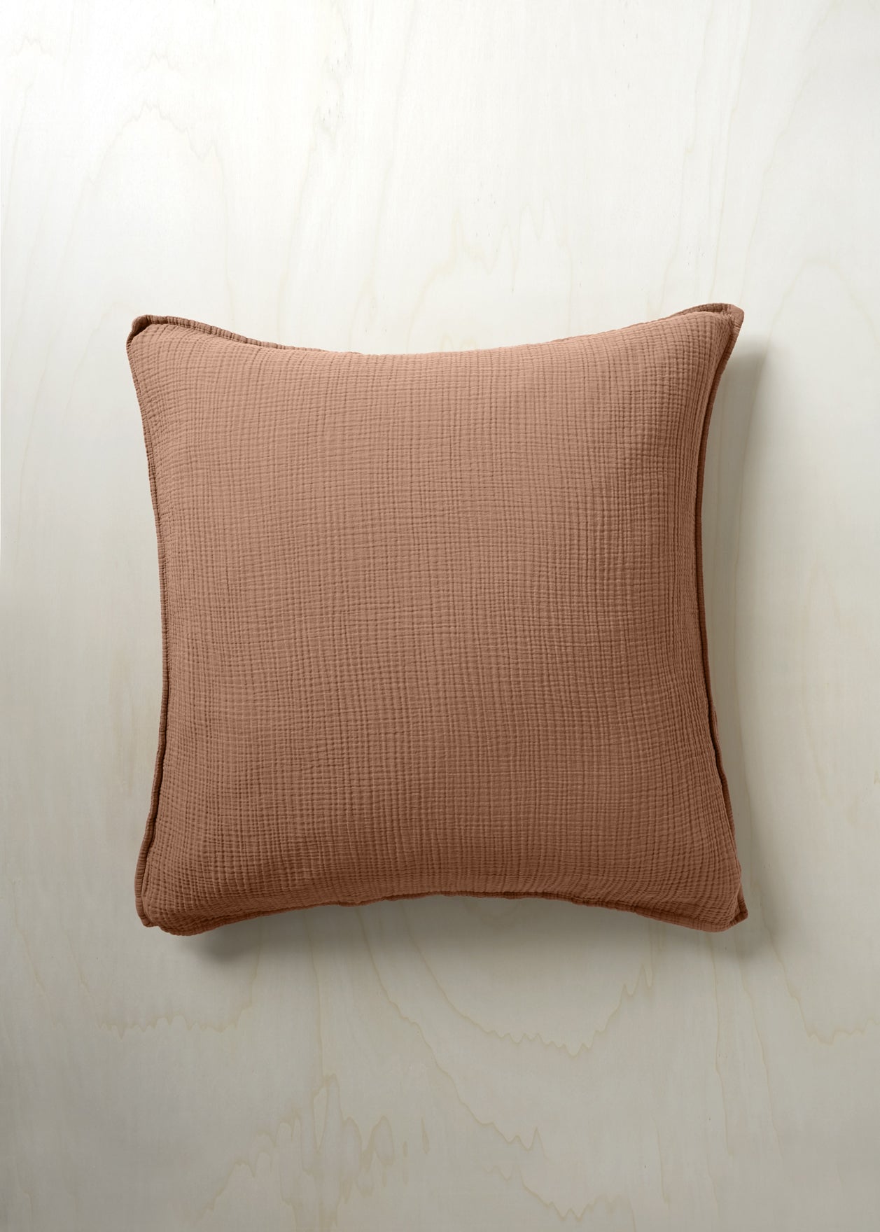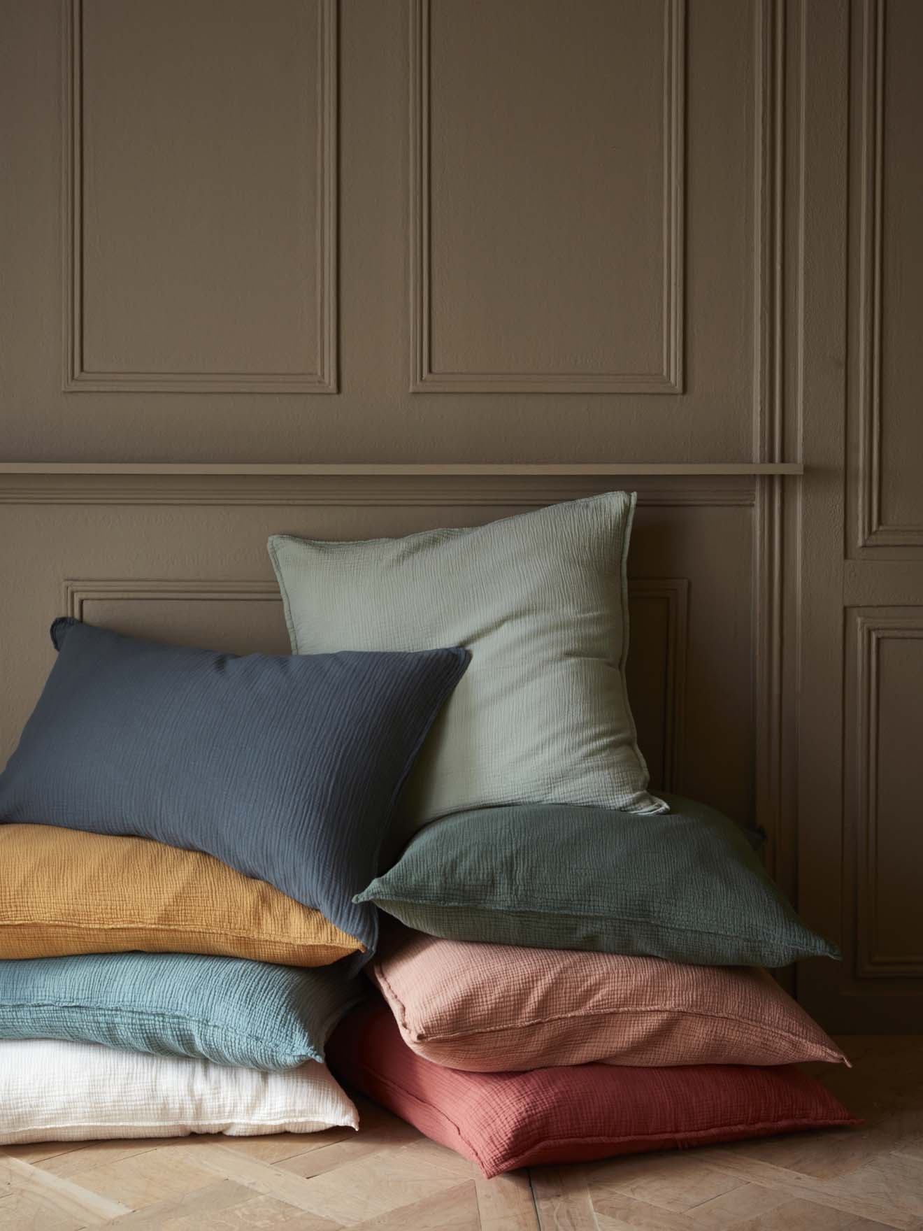Taie d'oreiller en gaze de coton tissée et confectionnée au Portugal. Son aspect légèrement gaufré procure une sensation de confort doux et aérien.