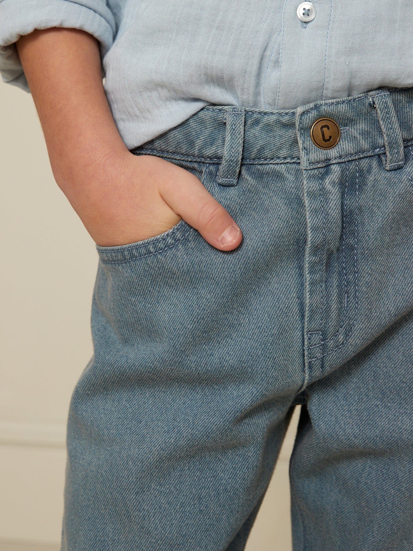 - Pour un habillage facilité, nos pantalons ont un bouton-pression jusqu'à la taille 9 ans