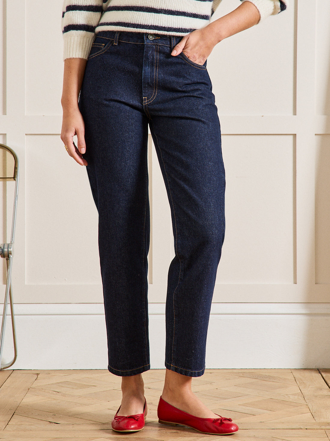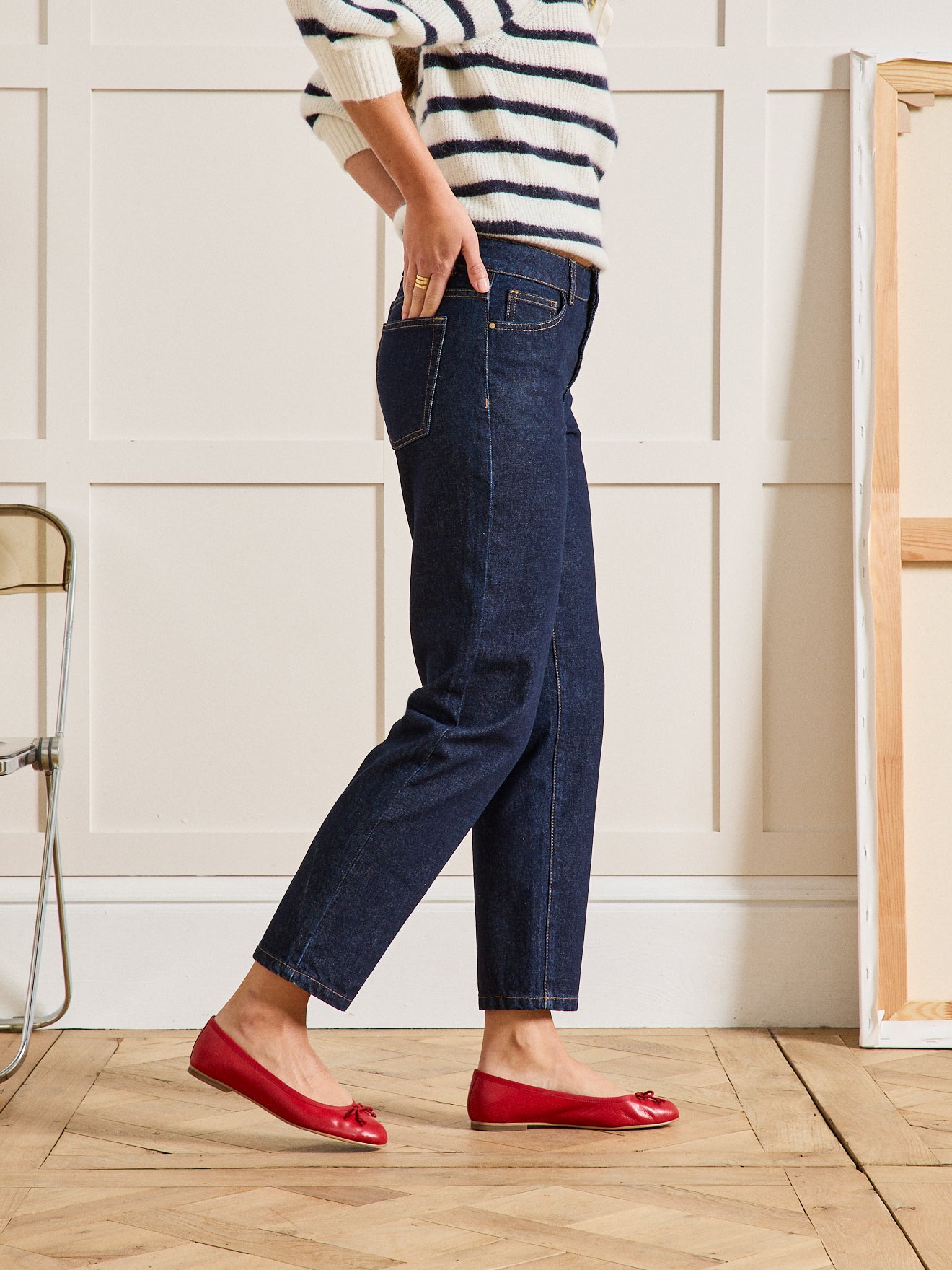Une ligne plus galbante, une coupe plus féminine, un look plus urbain. Pièce facile à porter en version brut, le jean mom compose avec tous les styles.