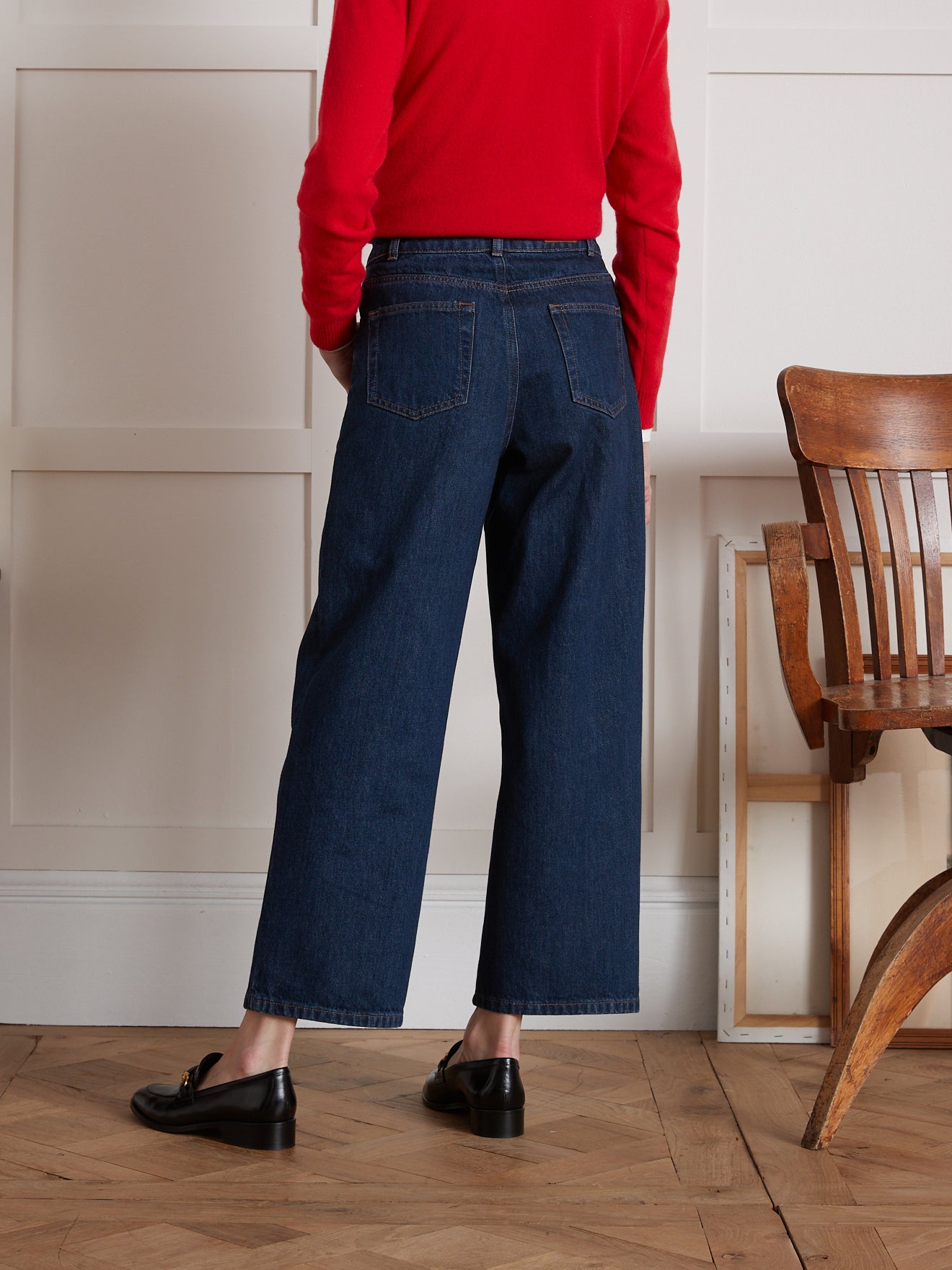 Coupe vintage large, en version denim brut, un jean aussi facile à porter en mode urbain chic qu'en version décontracté cool.