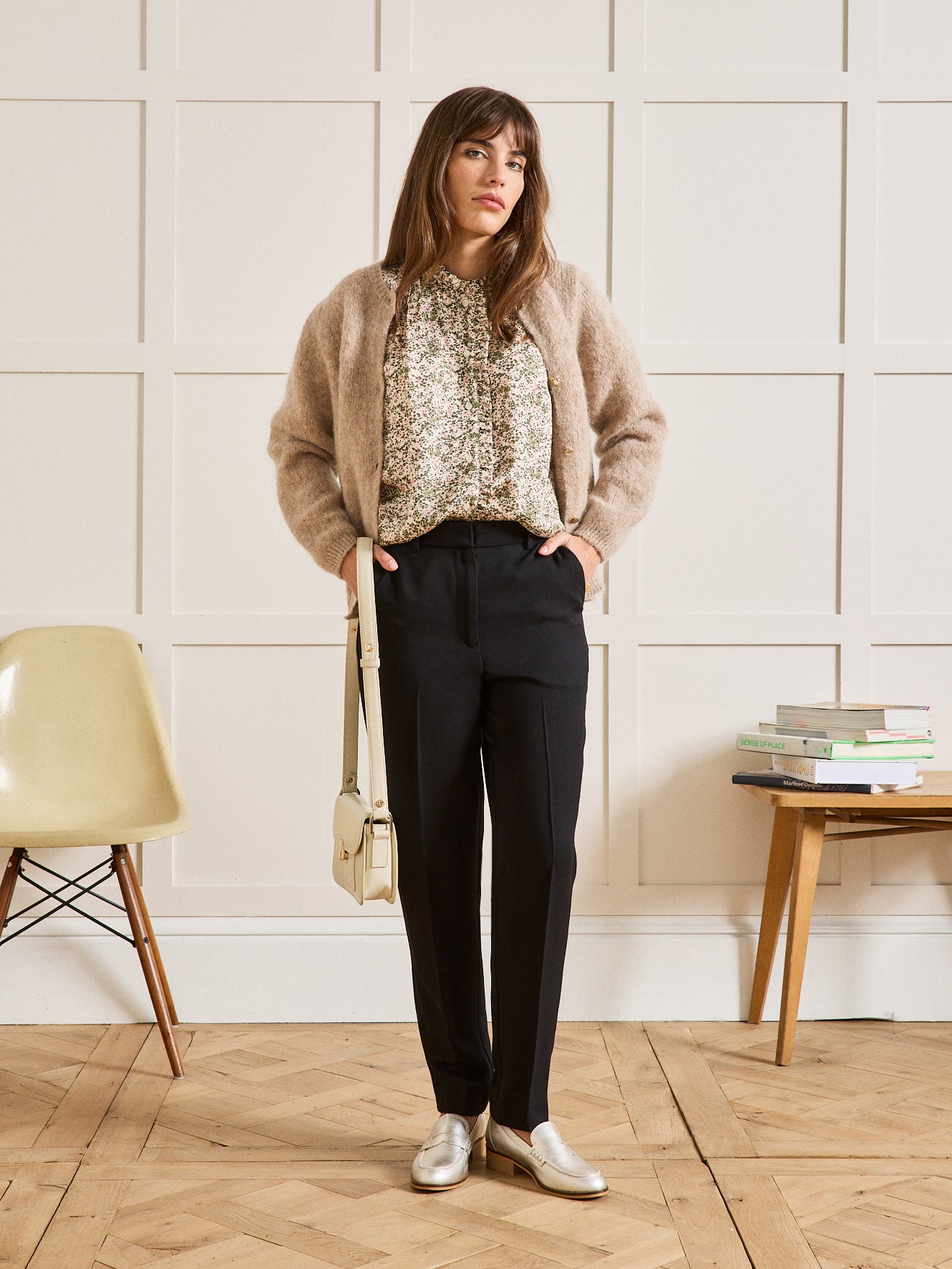 Nos stylistes l'interprètent en version classique, dans un coloris intemporel. Toujours impeccable, le pantalon se porte au quotidien, en mode working ou pour une occasion festive. Un must du dressing urbain chic, confectionné en Europe dans un crêpe lourd au tomber parfait.