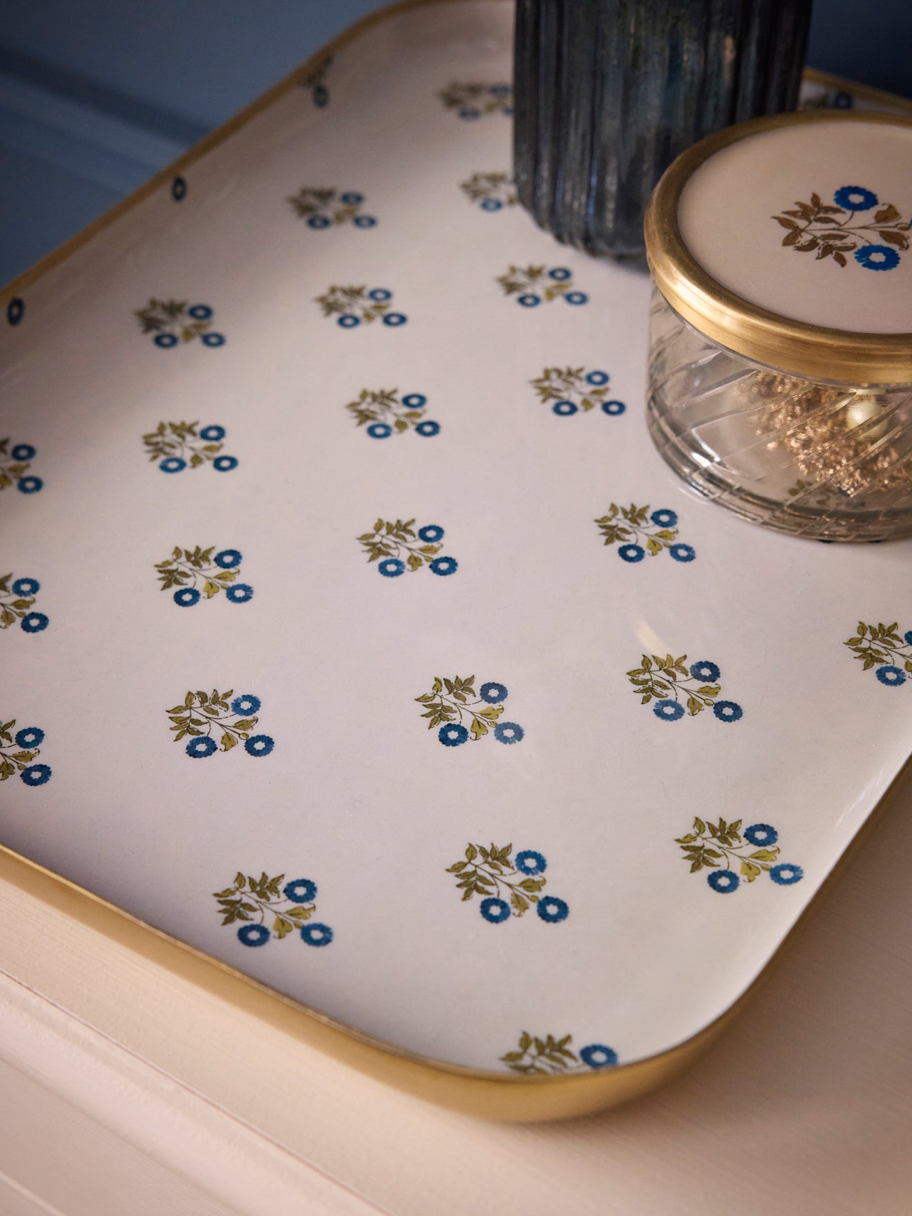 Plateau rectangulaire en aluminium émaillé. L'imprimé Ashley est un dessin exclusif réalisé par nos stylistes. Ce plateau est issu de l'artisanat indien. Chaque pièce est unique et réalisée à la main.
